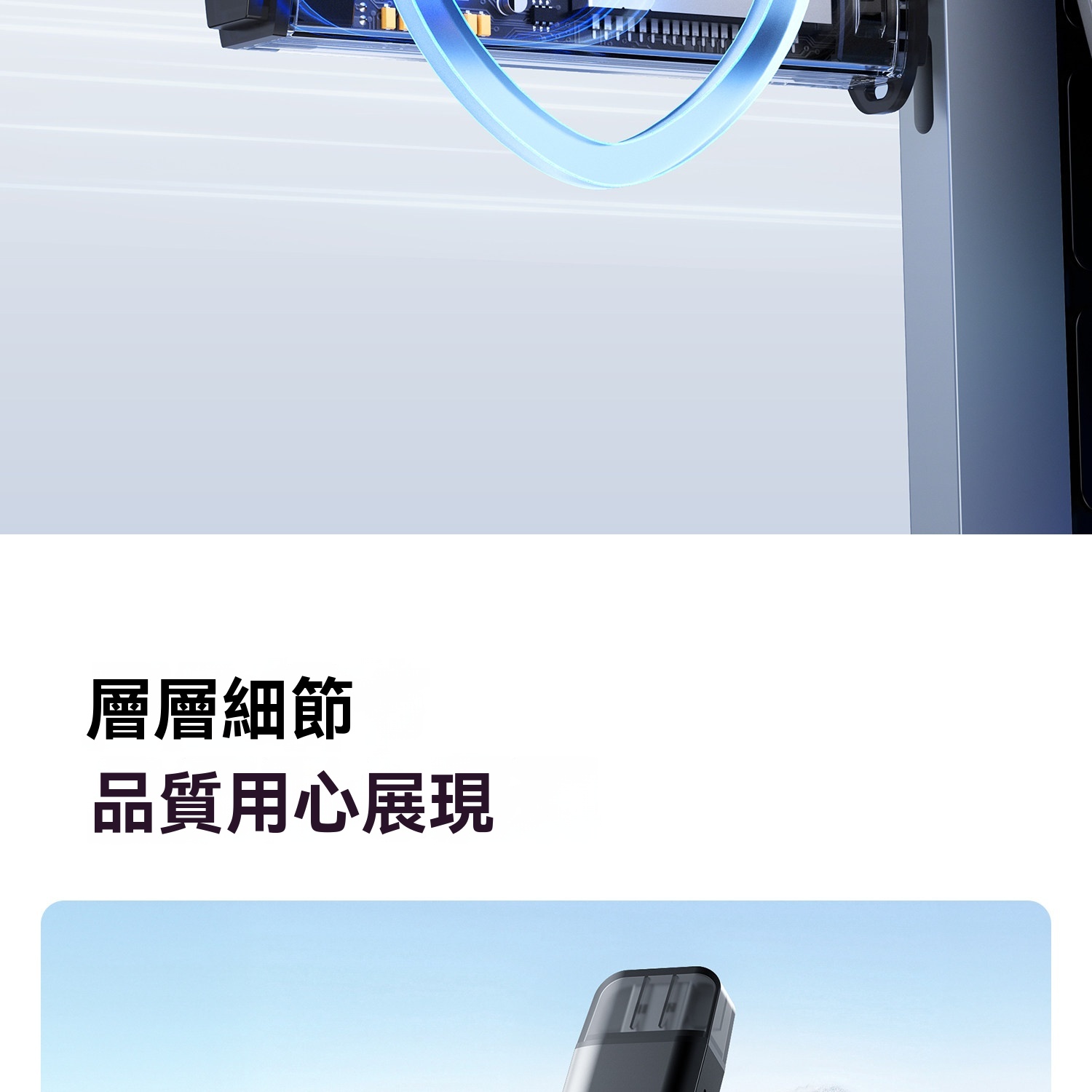 • 鋁合金外殼散熱,防塵蓋與掛扣設計,便攜防丟失