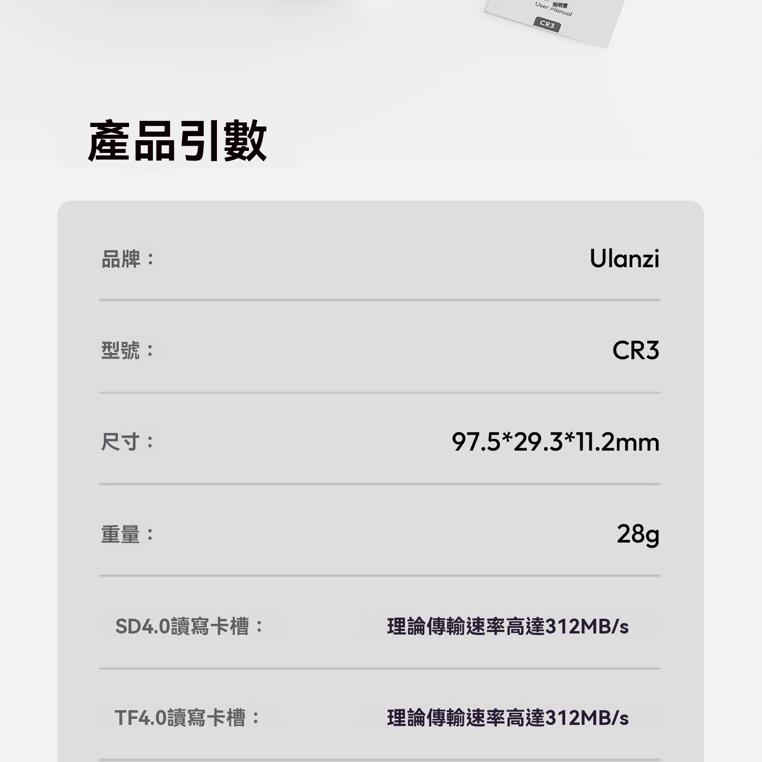Ulanzi CR3 三合一讀卡機 4.0 | 高效讀取 | 速率狂飆 | 多設備兼容 | 香港行貨