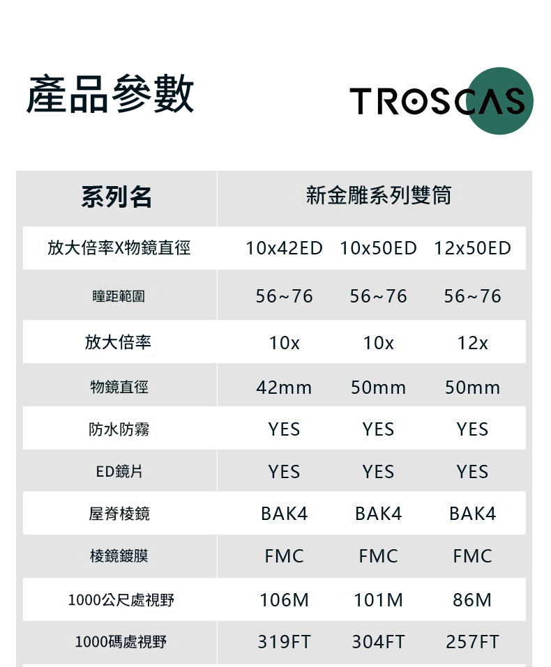 TROSCAS 第Ⅱ代金雕升級款雙筒望遠鏡 | 充氮防水 | 高清ED鏡