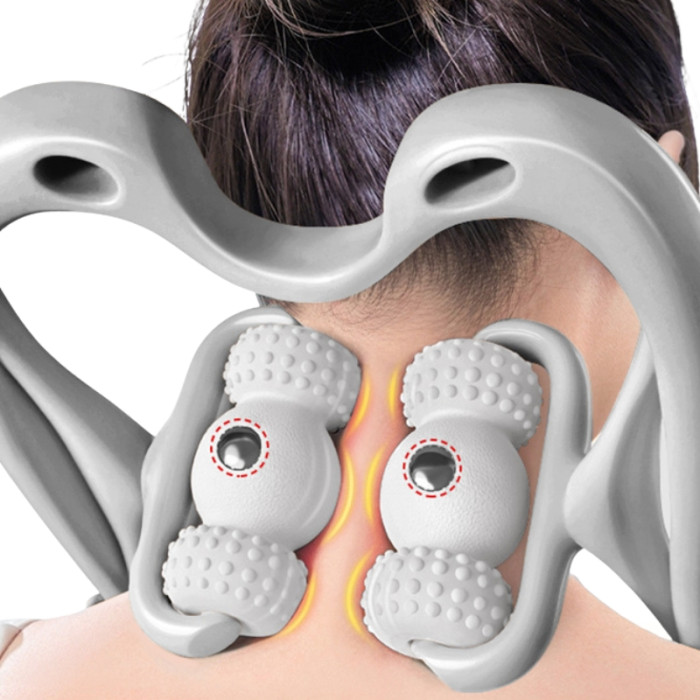 6球滾輪磁珠頸部按摩器 - 灰色 | 仿拇指真人揉捏|磁珠穴位刺激|貼合頸部|便攜放鬆肩頸