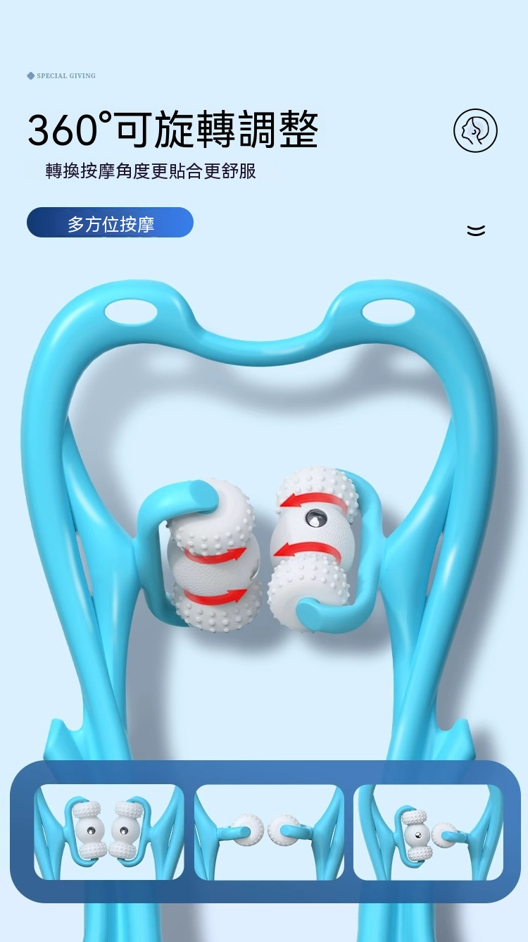 • 按摩方式:仿大拇指揉捏手法,貼合頸部結構