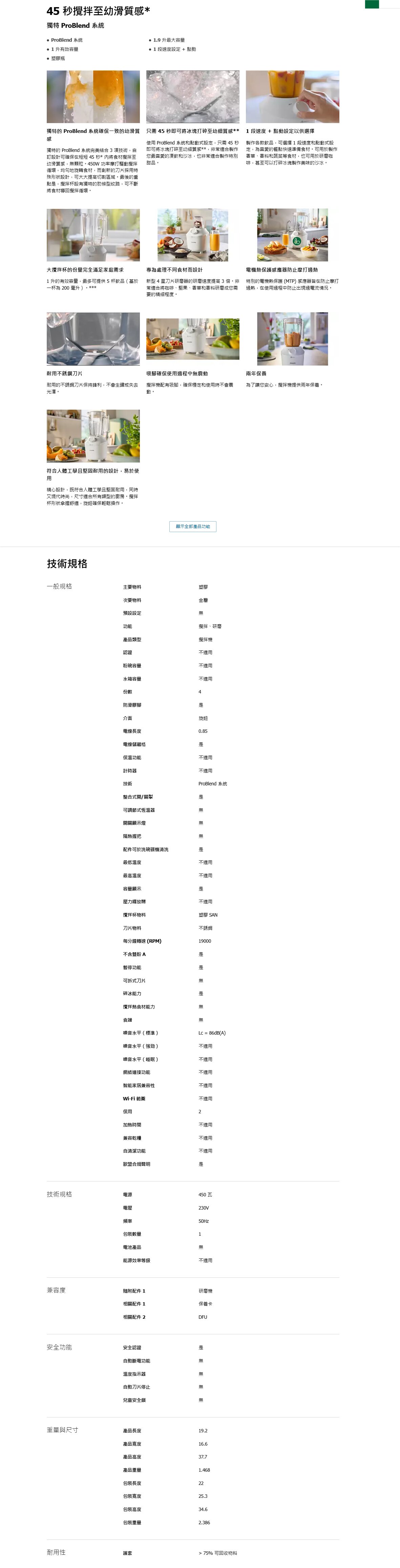 Buy Philips 飛利浦 HR2041/10 3000 Series攪拌機 | ProBlend 攪拌系統 | 45秒幼滑質感 | 450W強勁功率 | 香港行貨 price in outletexpress .com Hong Kong.In promotion and sale.