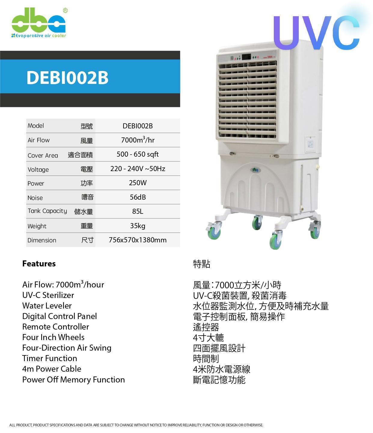 DBA 迪比亞 DEBI002B 移動式冷風機 | 7000m³/hr | 85L超大水箱 | UV-C殺菌消毒 | 四面擺風設計 | 香港行貨