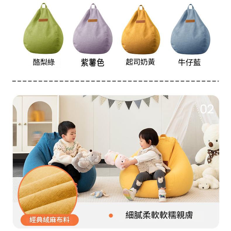 Luckysac 兒童豆袋懶人梳化是一款專為兒童閱讀、玩耍或休息設計的舒適家具,特別適合打造家居讀書角落。這款梳化結合了人體工學設計與安全環保材質,能有效呵護兒童的脊椎發育。