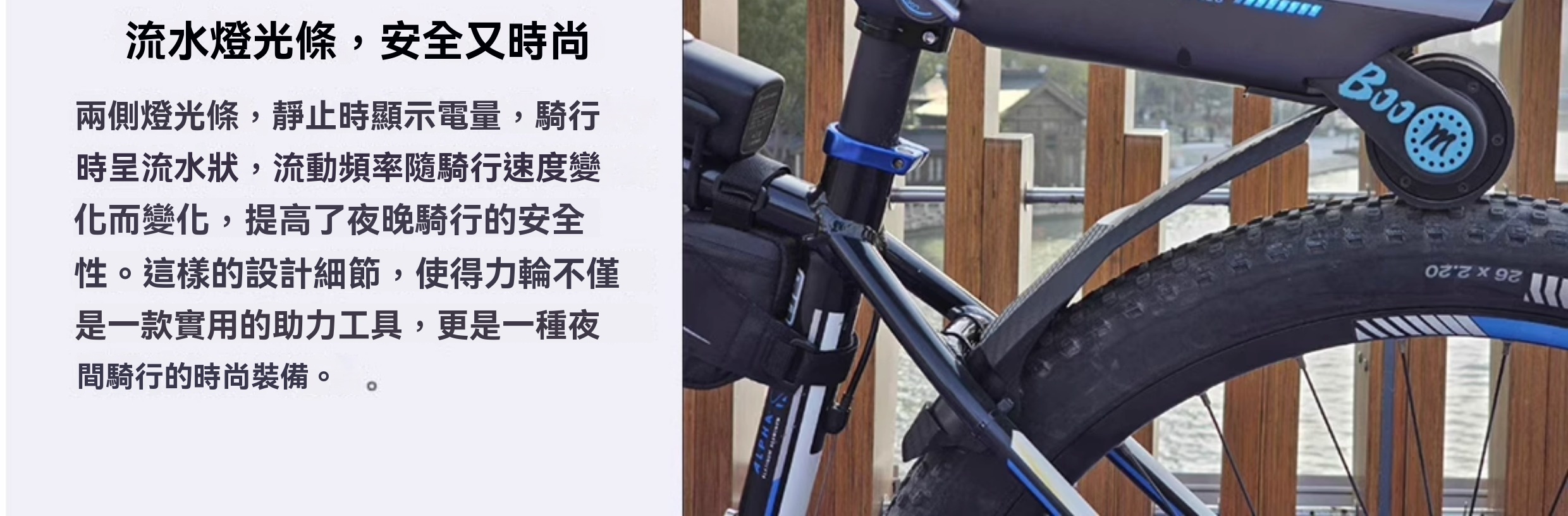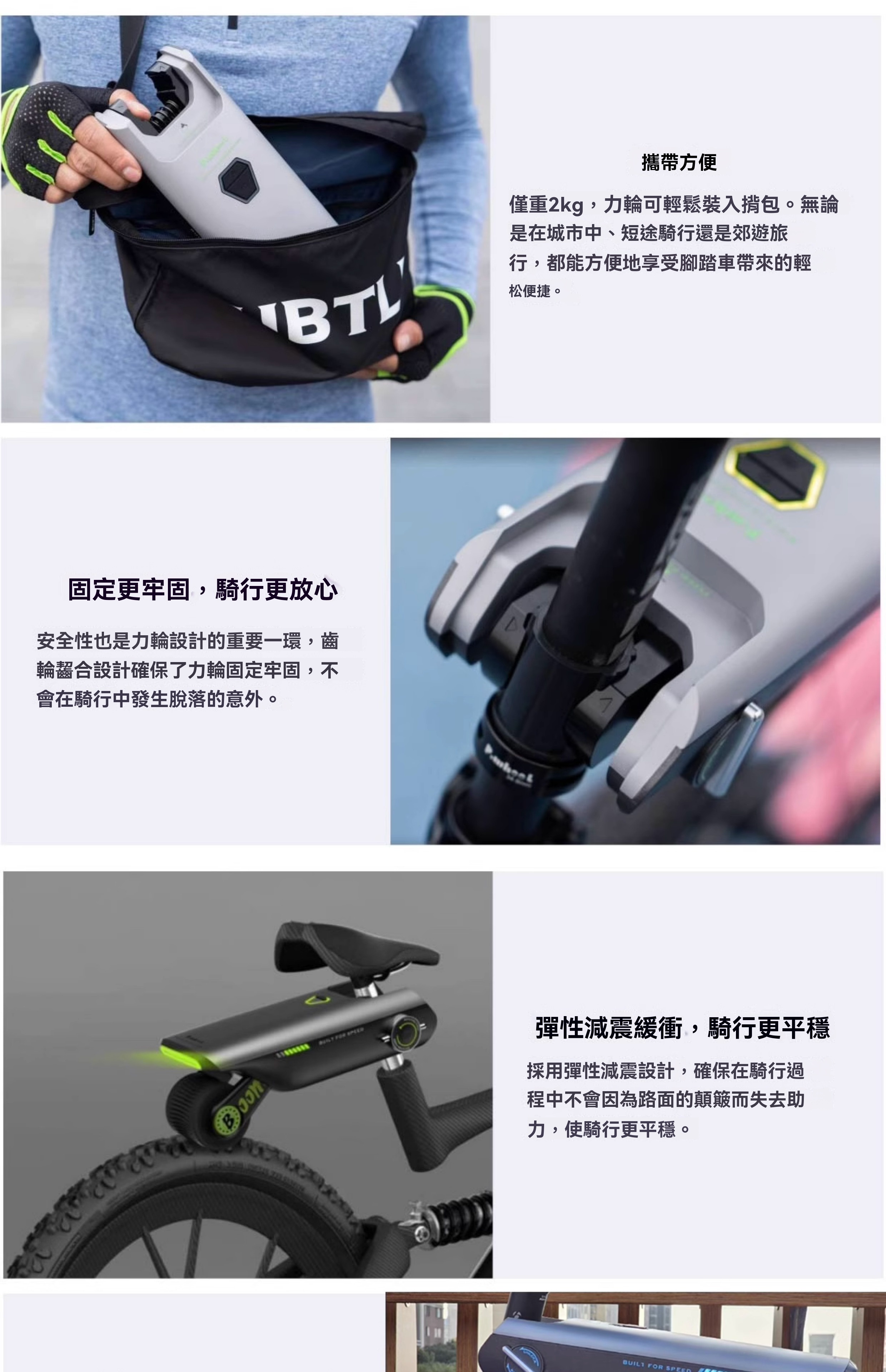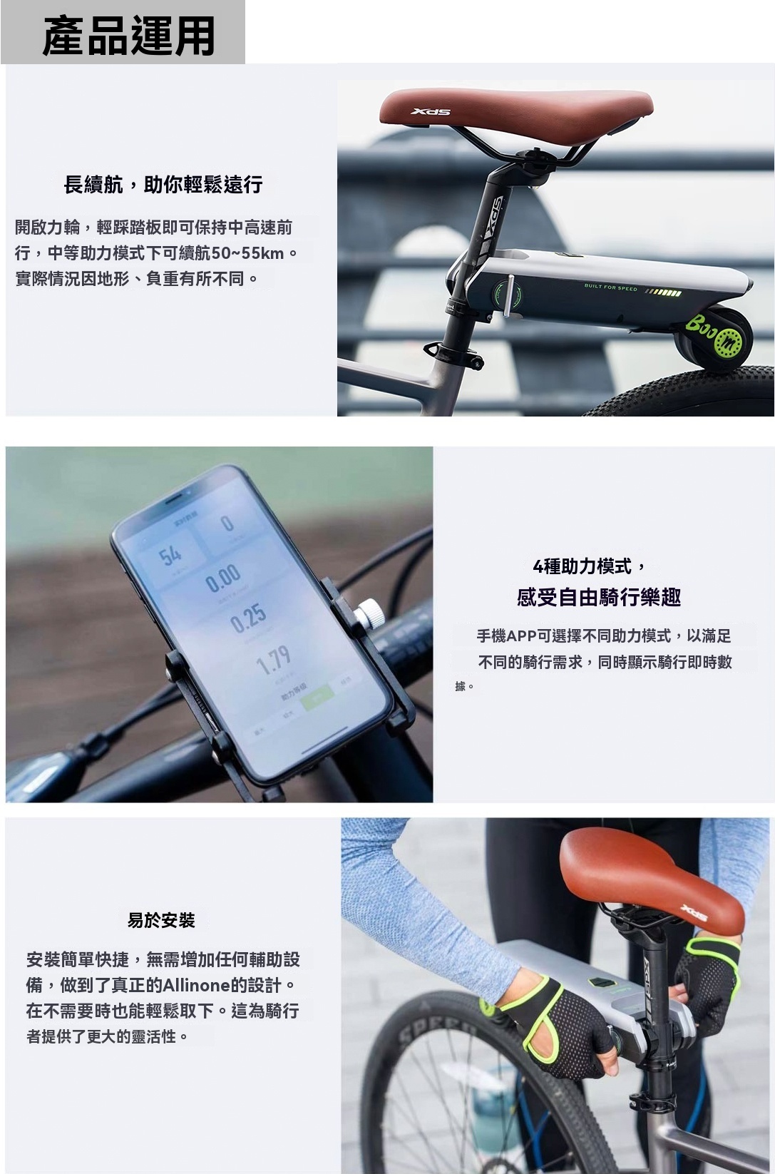 P.Wheel單車電動輔助改裝套件,是讓傳統腳踏車變身電動輔助車的神奇裝置。它核心部件包含電池、馬達、控制器等。馬達經碟煞適配器與車架相連,不影響原有碟煞卡鉗使用。套件功率強大,能輕鬆助你爬坡、加速,安裝後騎乘速度可達每小時32公里 。其設計精巧,便於拆卸,手掌大小的體積不會給單車增添過多負擔,讓你在需要時隨時享受電動助力,為騎行帶來更多便利與樂趣,輕鬆應對各種出行場景。