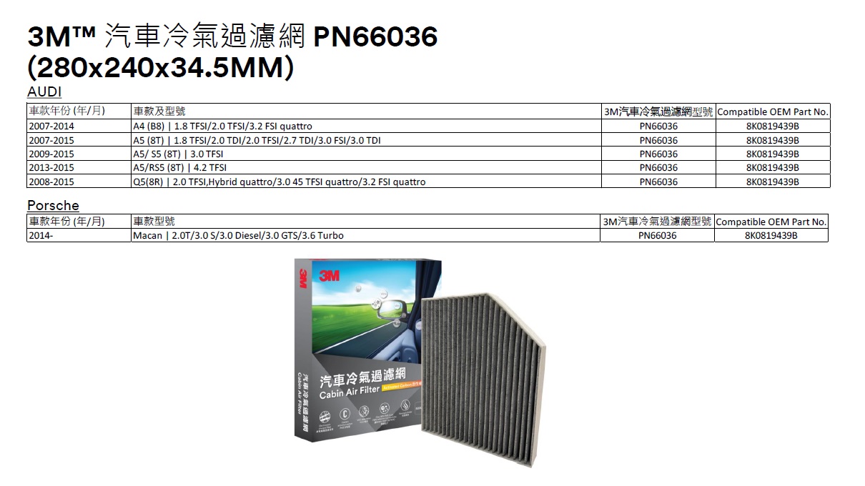 Buy 3M 汽車冷氣過濾網 280 x 240 x 34.5毫米 PN66036 price in outletexpress .com Hong Kong.In promotion and sale.
