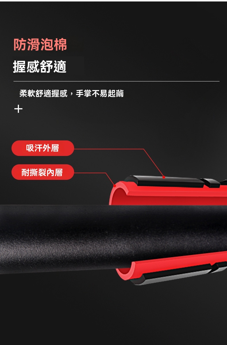 • 握把材質: 防滑泡棉(吸汗外層+耐撕裂內層)