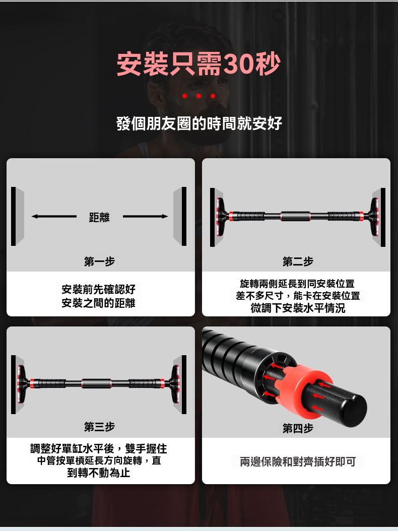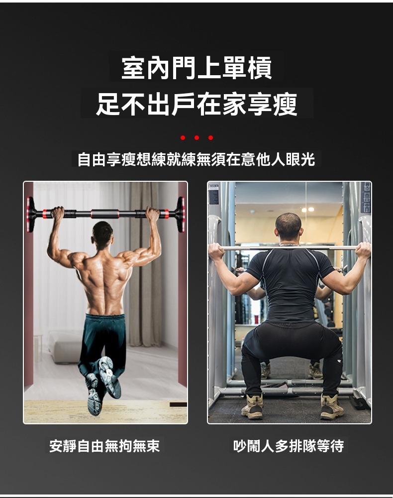 免打釘安裝引體上升橫桿單槓 | 70-95cm伸縮 | 150kg承重 | 引體上升/俯臥撑/仰臥起坐