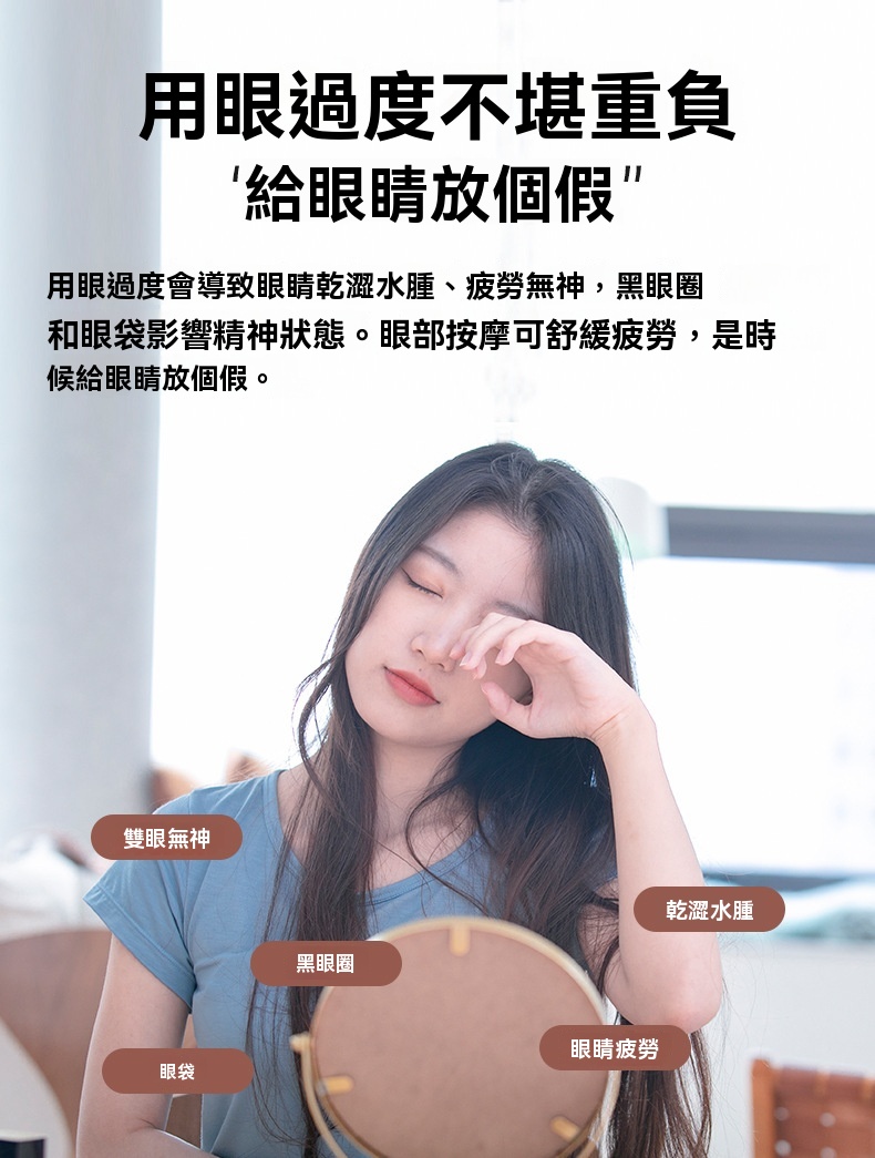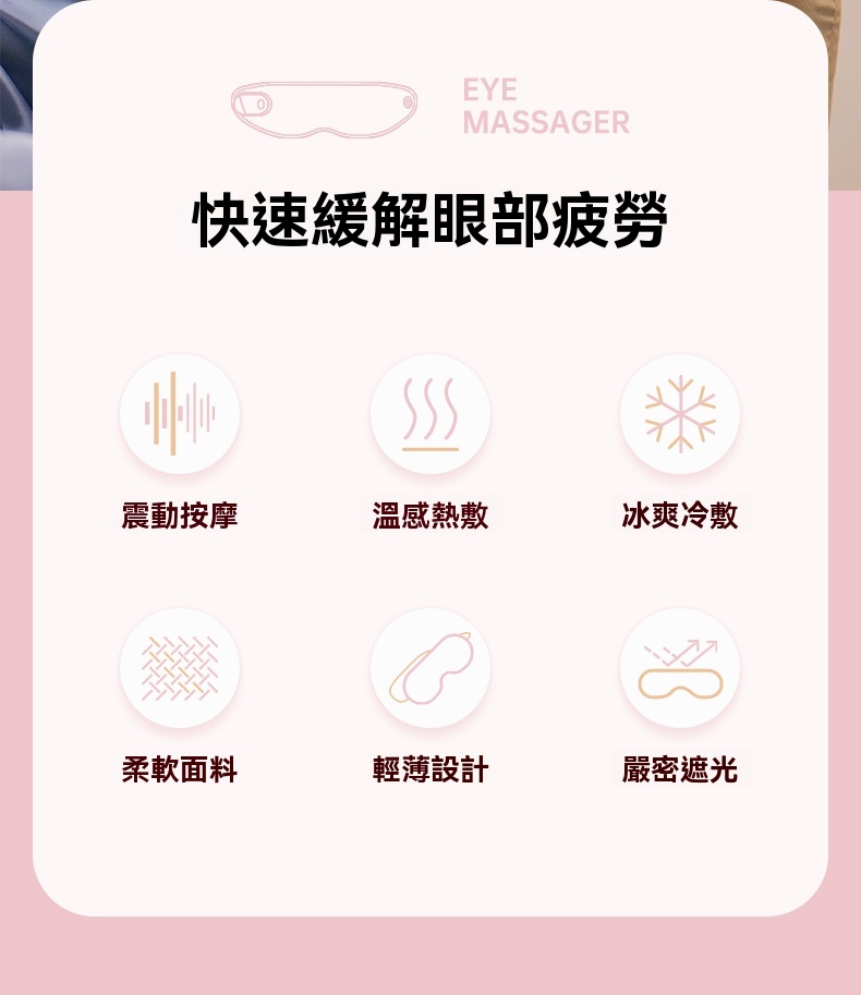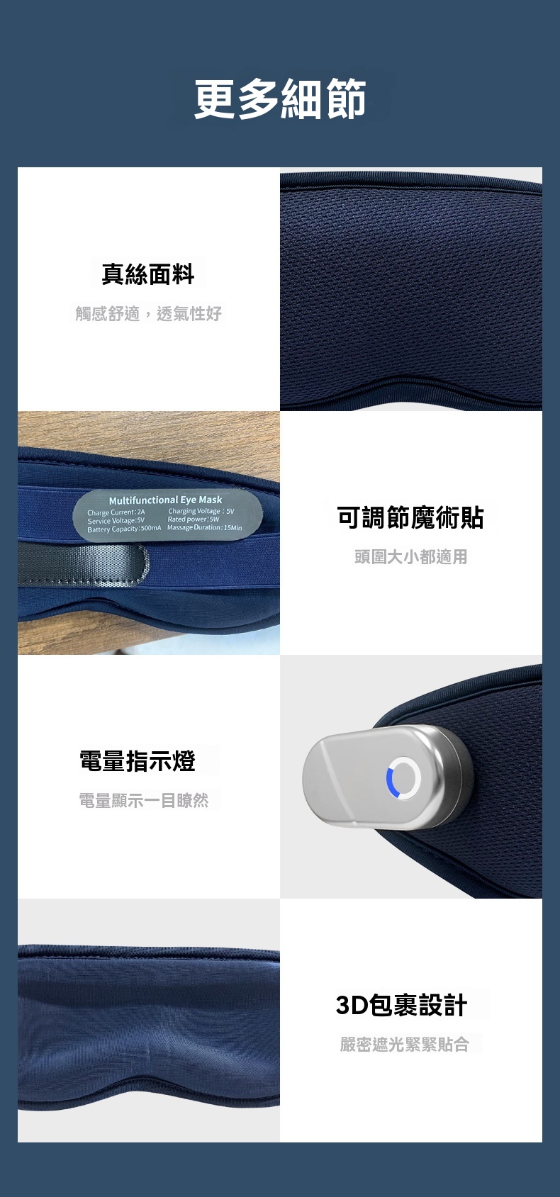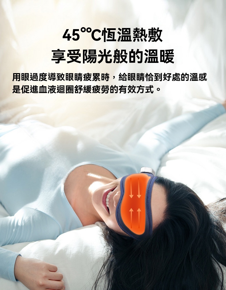 這款多功能絲質眼罩專為用眼過度人群設計,可有效緩解眼部疲勞、乾澀、黑眼圈及眼袋問題。產品搭載震動波技術,透過內建微型馬達高頻震動按摩眼周,配合約45°C恆溫熱敷,促進血液循環;亦可使用附送的凝膠冰袋進行冰爽冷敷,消除水腫。其3D包覆結構符合人體工學,無縫貼合眼部,實現全方位遮光且不壓眼球。眼罩採用親膚透氣的絲質布料,配備可拆卸磁吸電池,支援Type-C充電,智慧定時15分鐘自動關機。輕巧便攜,適用於加班、旅途、午休等多種場景。