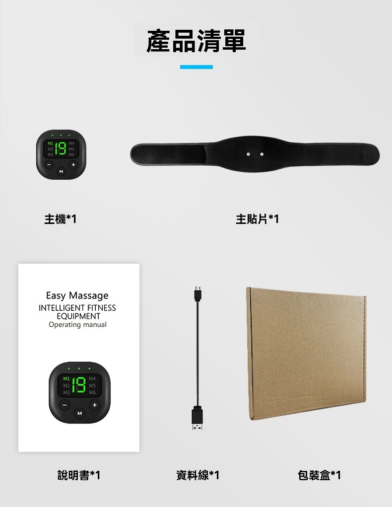 這款石墨烯EMS微電流智慧健身腰帶(黑色)是專為久坐族群與健身愛好者設計的懶人塑身神器。產品利用EMS黑科技,透過磁吸主機傳送微電流直達肌肉深層,模擬運動信號刺激肌肉自主收縮,實現腹部自主運動,你不動它來動。主機提供6種模式與19級震動頻率,可針對腹部、背部、腰部及腿部進行全方位鍛煉,有助緊實肌肉、甩掉肚腩與塑造曲線。其採用USB快速充電,每天使用15分鐘即可持久續航,輕巧便攜隨時可用。產品清單包含主機、腰帶貼、說明書與數據線,外觀為PU皮革材質。