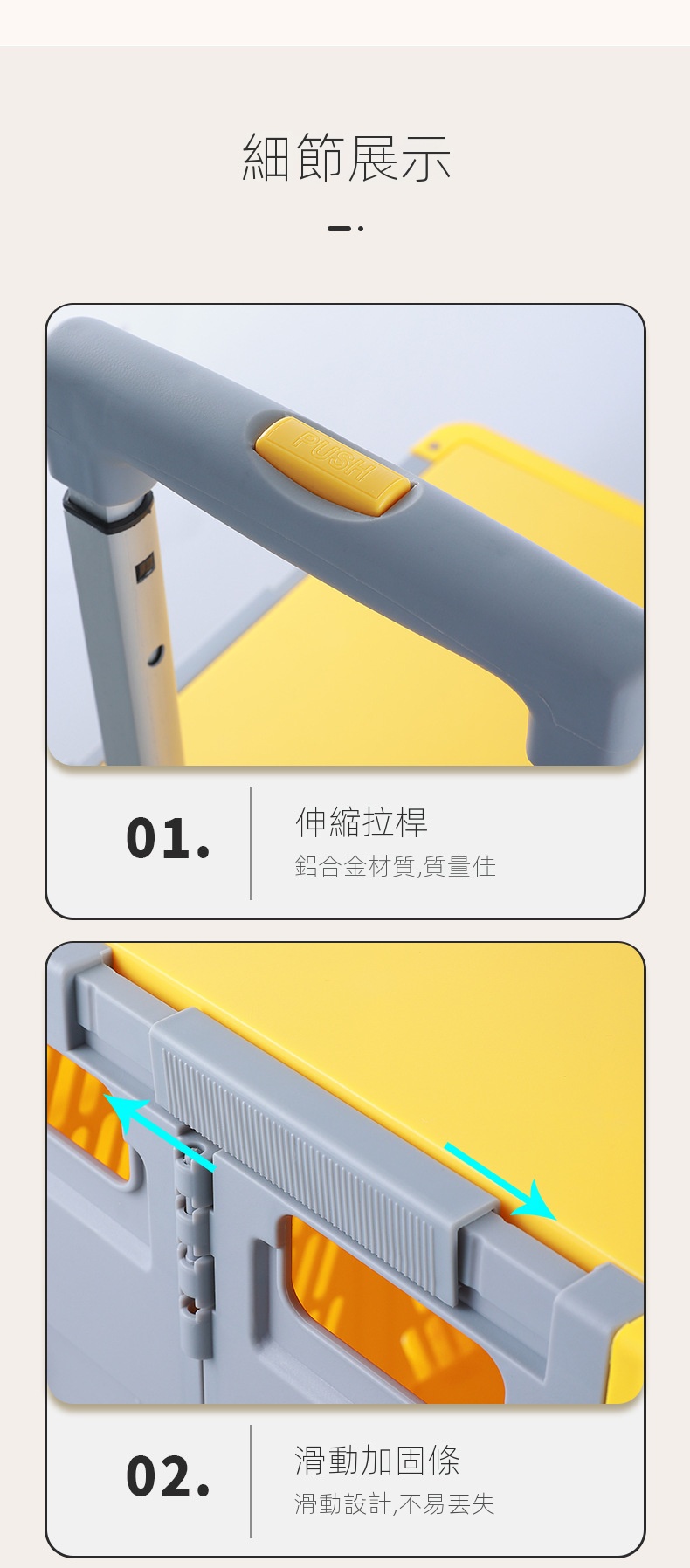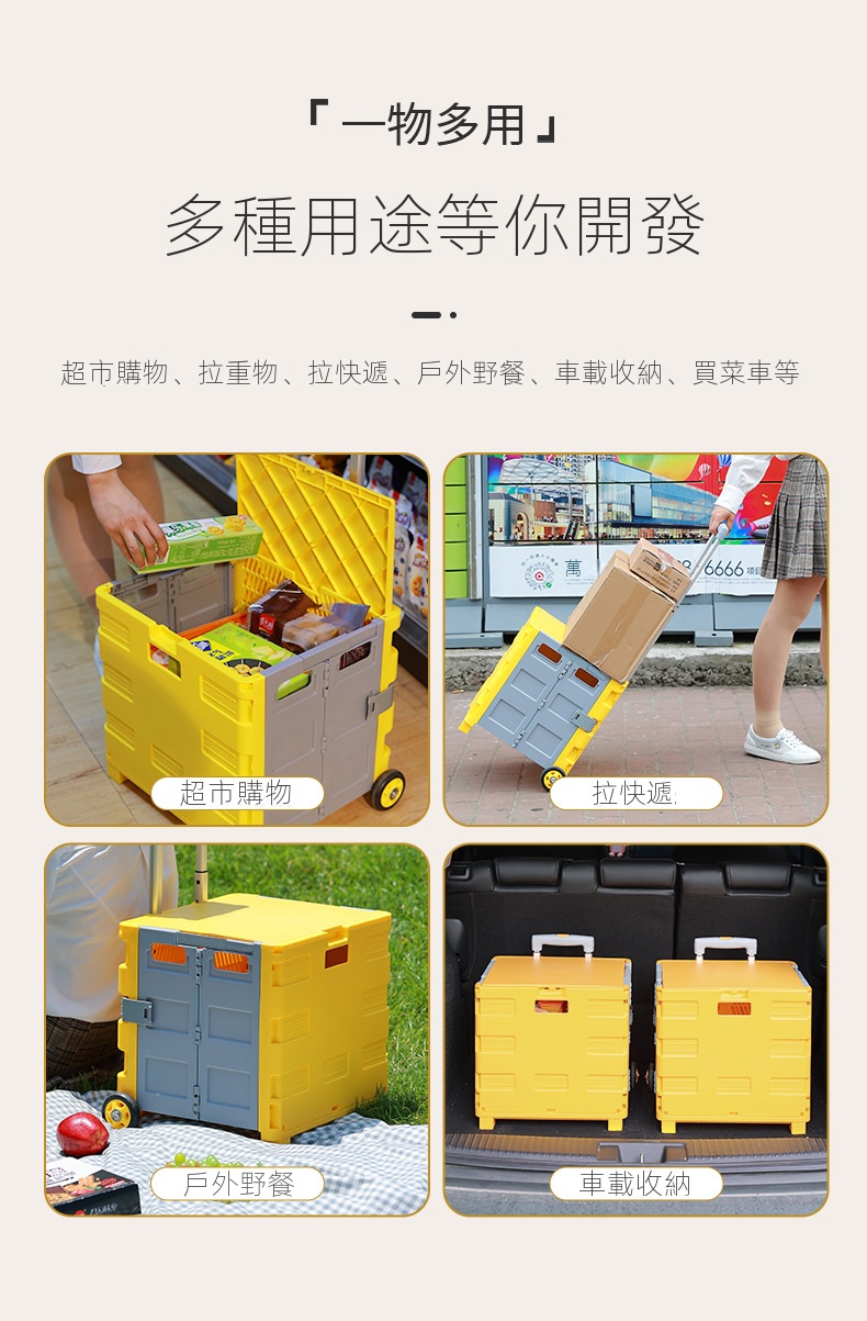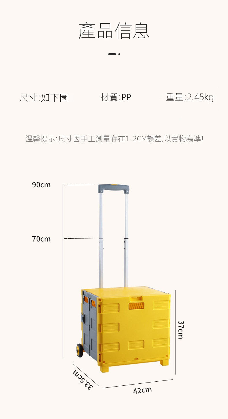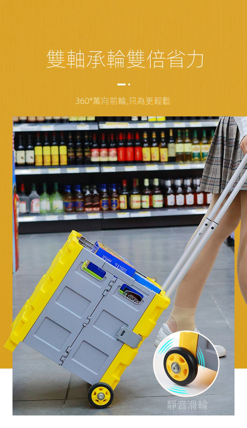 這款多功能可折疊拉桿購物車擁有大容量,其採用了鋁合金、增強PP塑料和鐵件製成,堅固耐用。特色設計包括滑動式一體箱蓋,三秒快速折疊,下置滑輪承重力強,拉桿高度可調,方便根據身高調節。此購物車不僅適用於超市購物,還可用於拉重物、戶外野餐等多種場合,是您生活上的得力助手。