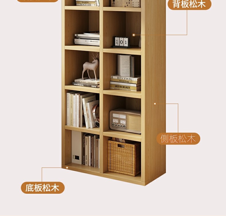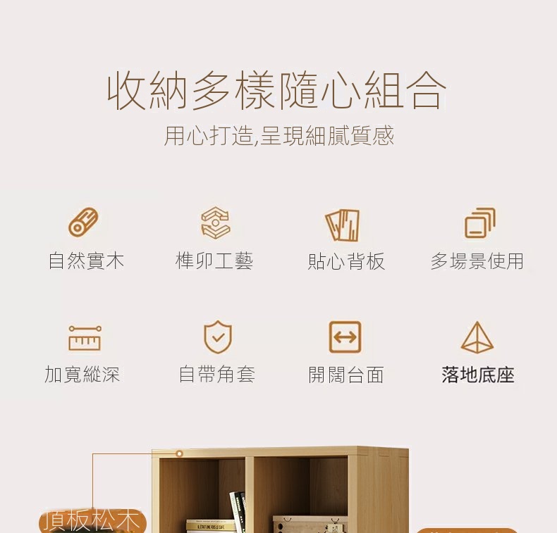 Buy 全實木書櫃收納櫃 | 落地靠牆一體格子櫃 | 八格櫃 - 原木色八格|60*30*120CM price in outletexpress .com Hong Kong.In promotion and sale.