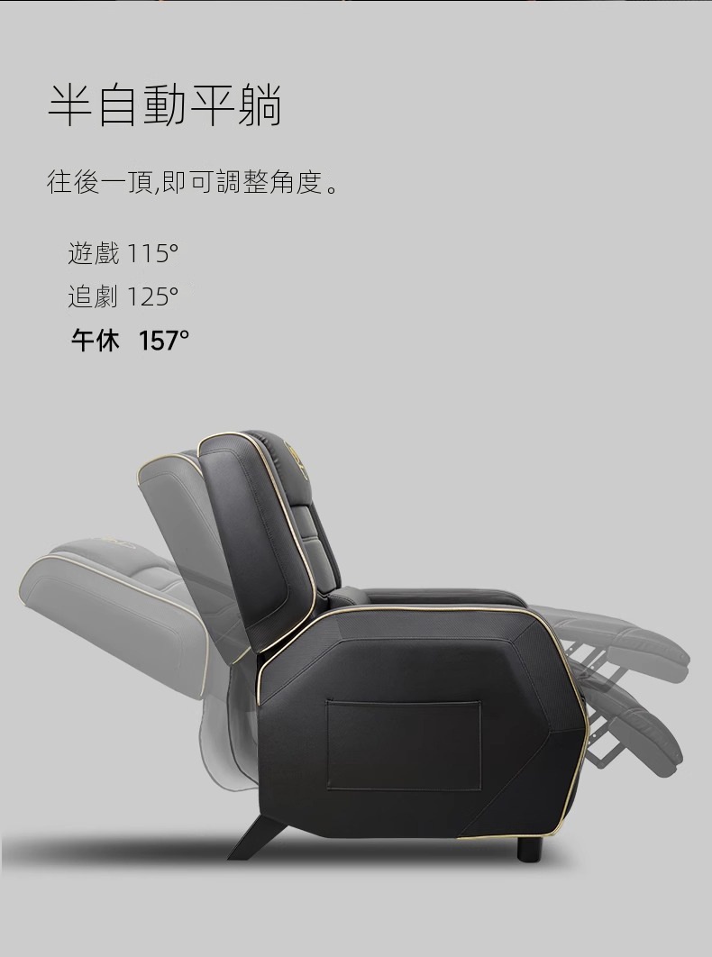 Outlet Express HK 生活百貨城在香港觀塘提供 半自動式平躺懶人梳化 - 黑色金邊 | 家用遊戲電競座椅 | 承重160kg 在那裡買邊到買或邊度買代理資料及價錢實惠借批發優惠以及公司學校報價,更可送到香港或澳門而部份產品比團購更優惠,更可以為你推薦推介相似產品及優點缺點,請留意我們最新產品價格更新。