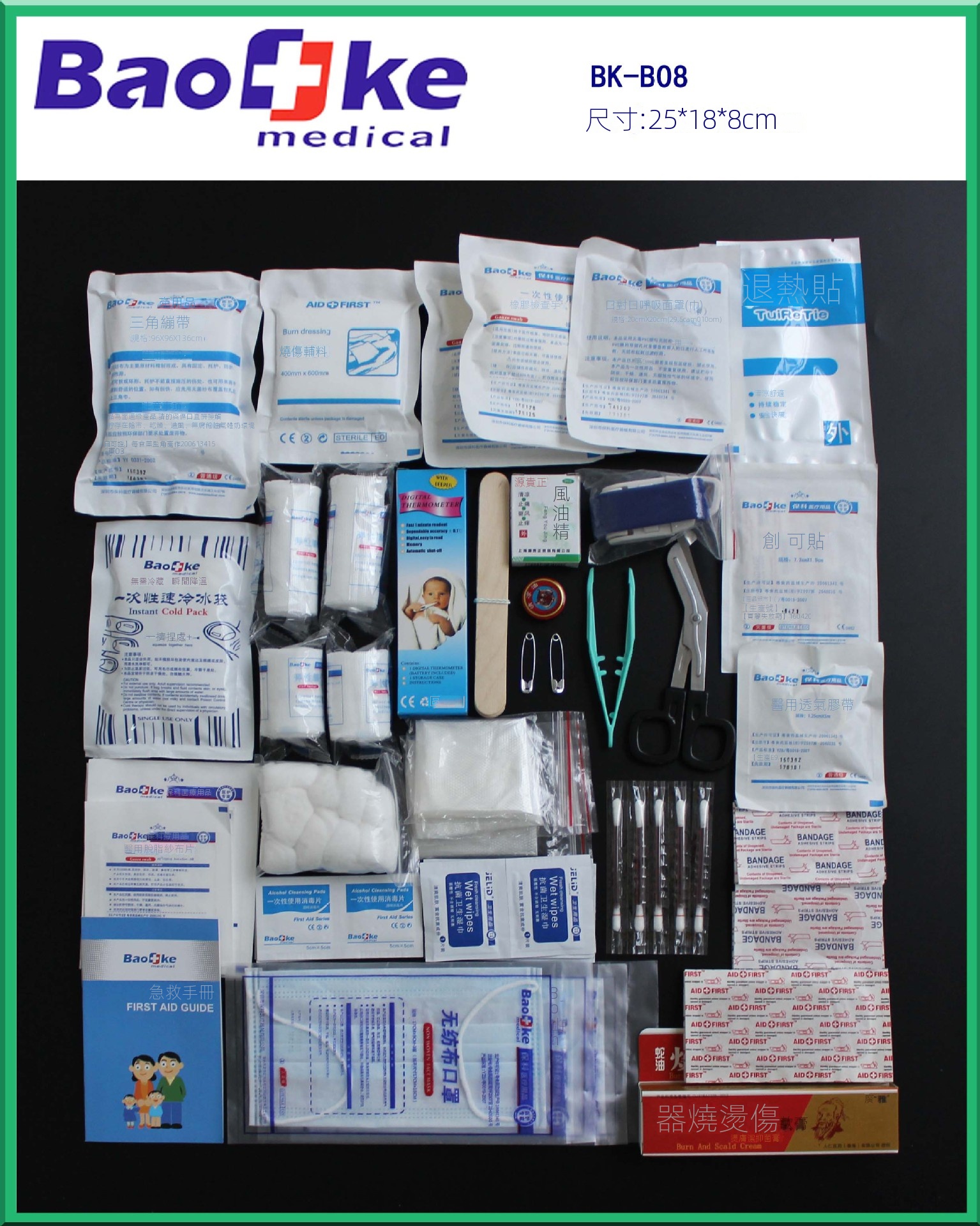 大容量急救包,適用於緊急時刻提供專業護理,適合存放於陰涼、乾燥、通風環境。此急救包內含豐富且實用的醫療用品,可快速應對各種突發傷害。其結構緊湊,方便存放於背包或車輛中,隨時提供必要的急救支持。