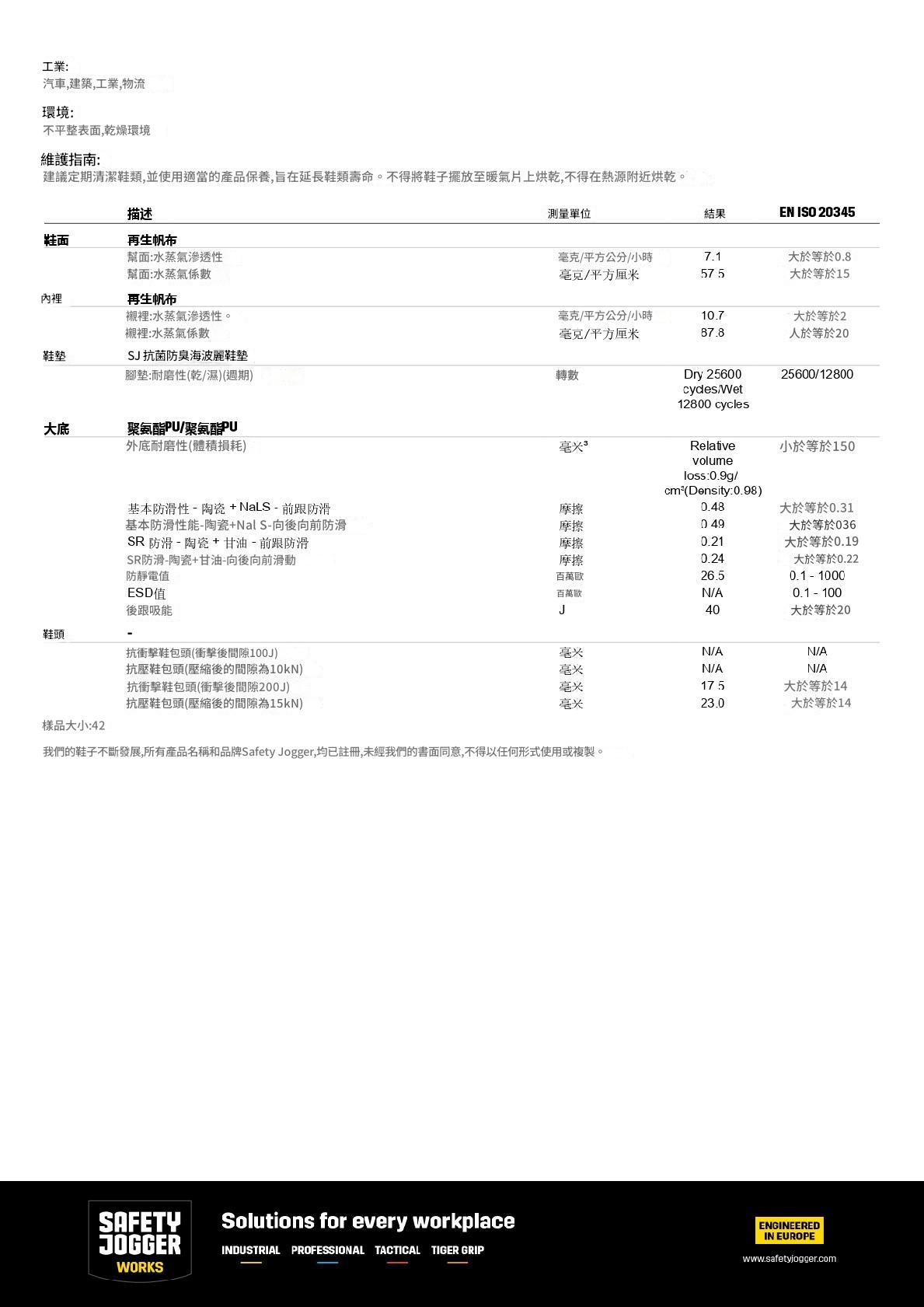 • 標準:ASTM F2413:2018;EN ISO 20345:2022