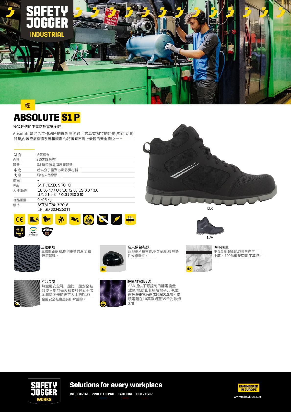 Outlet Express HK 生活百貨城在香港觀塘提供 SAFETY JOGGER ABSOLUTE S1P 200891 中筒防靜電安全鞋(黑色) - 44碼 | SJ 減震抑菌環保鞋墊 | 無金屬材料 | 三維網眼 在那裡買邊到買或邊度買代理資料及價錢實惠借批發優惠以及公司學校報價,更可送到香港或澳門而部份產品比團購更優惠,更可以為你推薦推介相似產品及優點缺點,請留意我們最新產品價格更新。