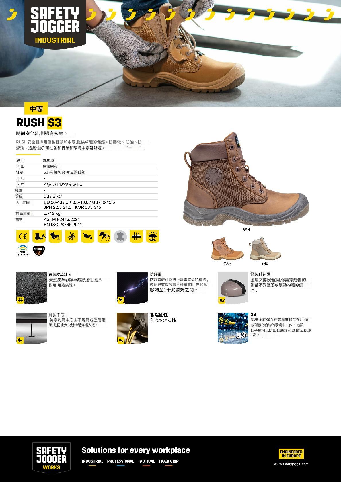 Outlet Express HK 生活百貨城在香港觀塘提供 SAFETY JOGGER RUSH S3 侧帮拉链款 860203 高筒安全鞋(棕色) - 43碼 | 耐燃油性 | 透氣皮革鞋面 | 雙密度PU大底 在那裡買邊到買或邊度買代理資料及價錢實惠借批發優惠以及公司學校報價,更可送到香港或澳門而部份產品比團購更優惠,更可以為你推薦推介相似產品及優點缺點,請留意我們最新產品價格更新。