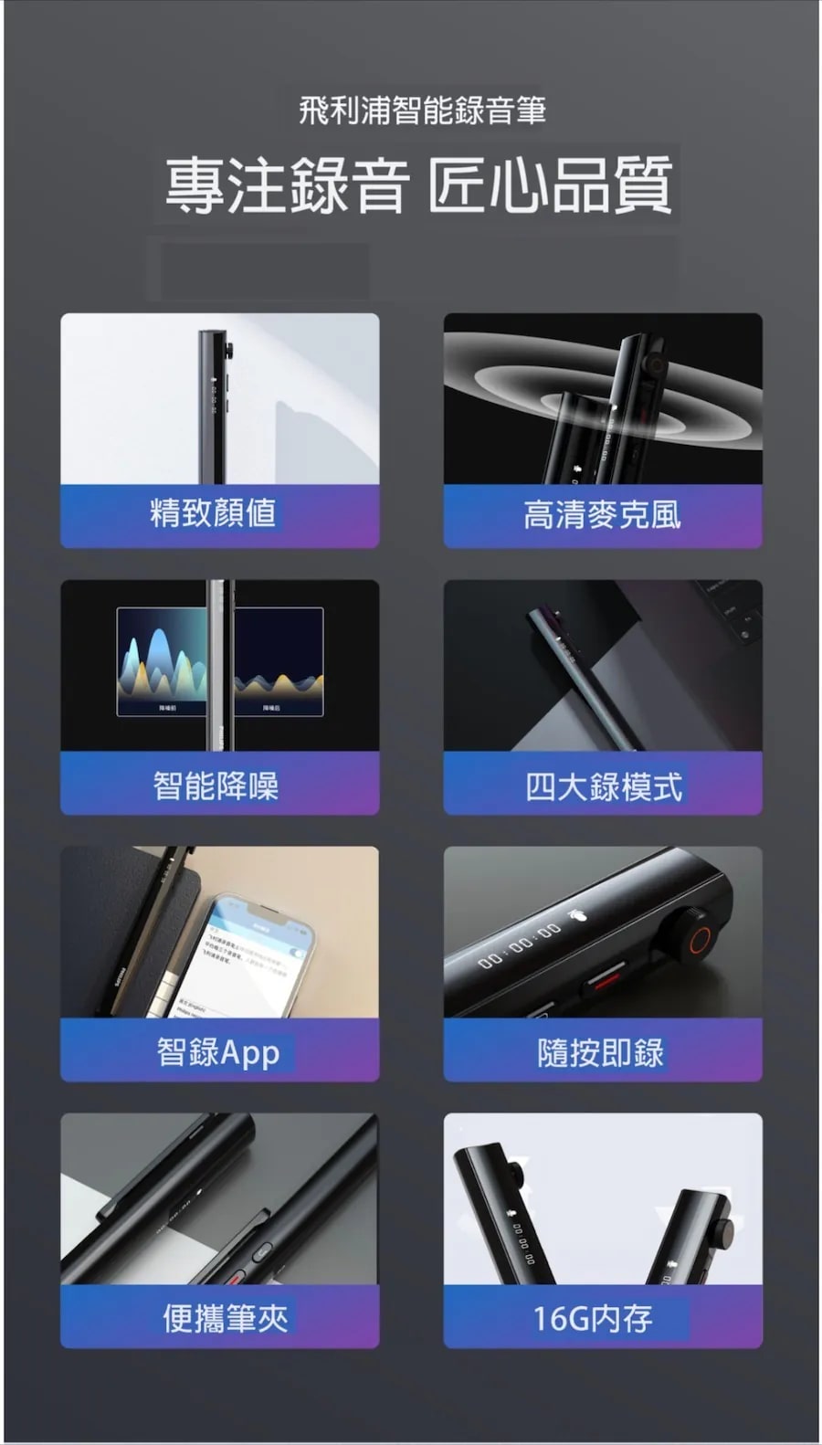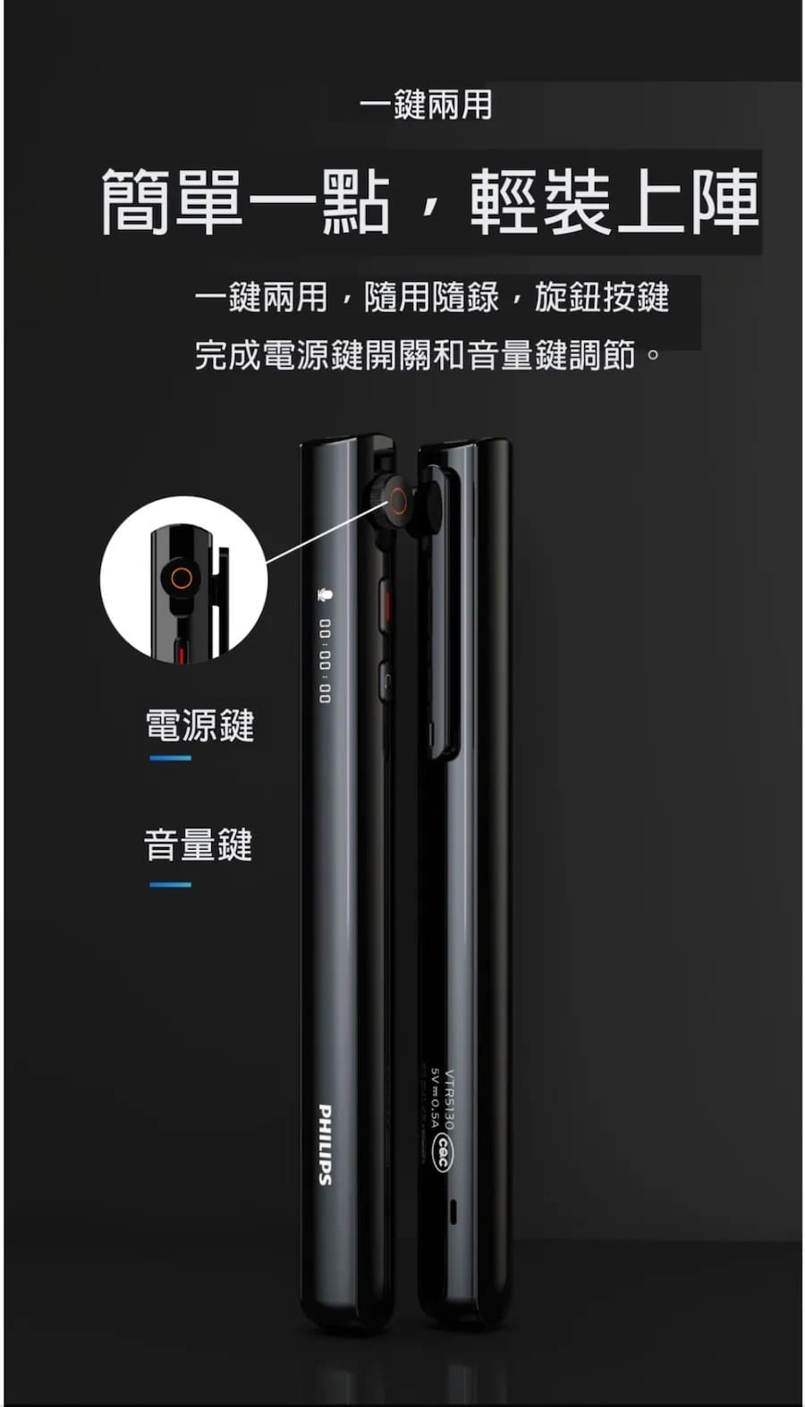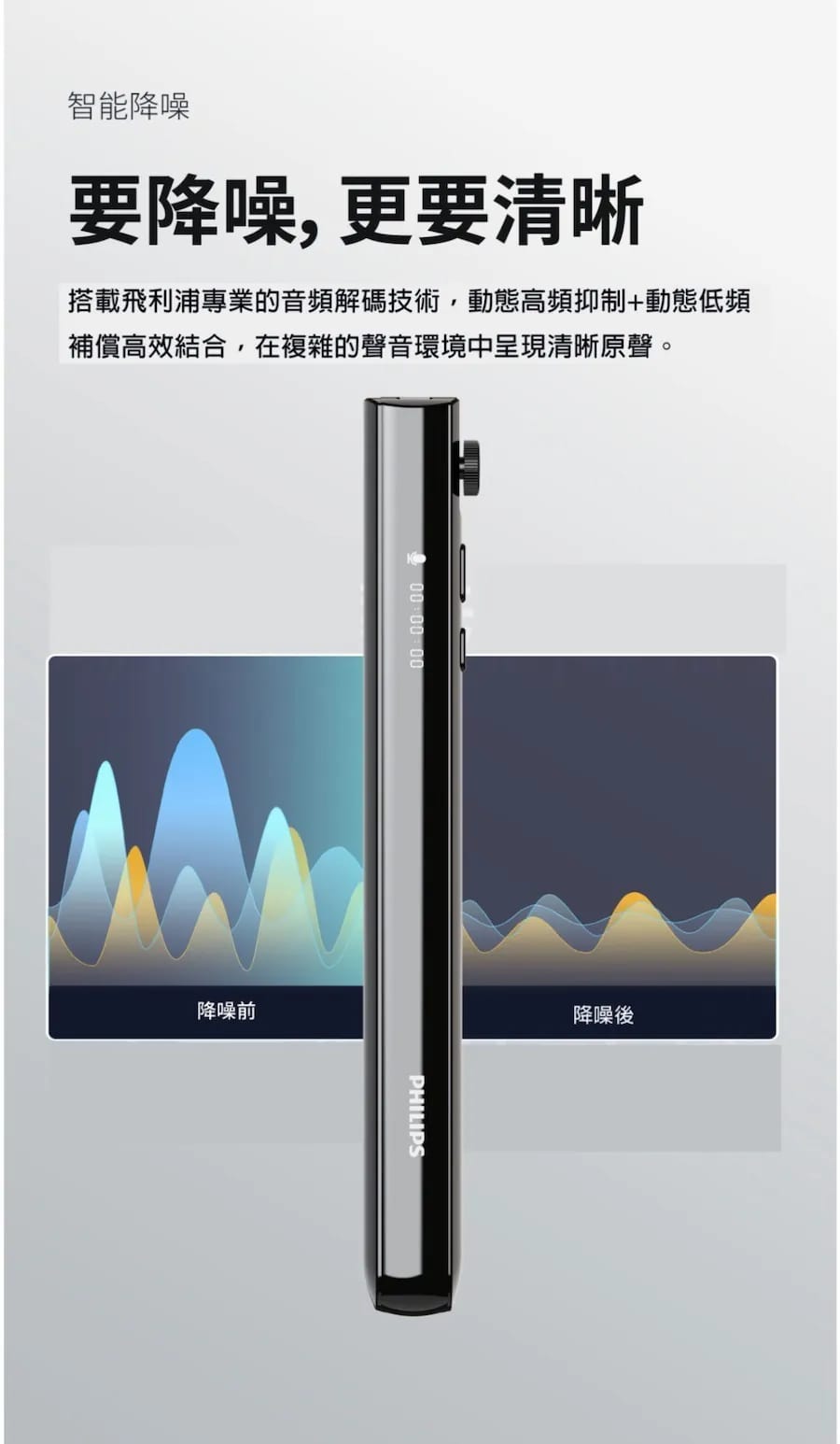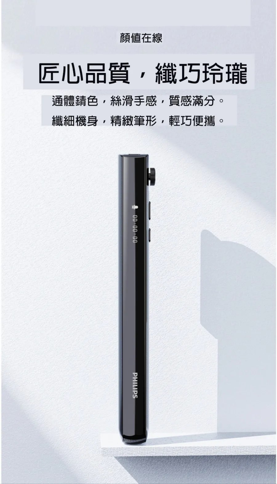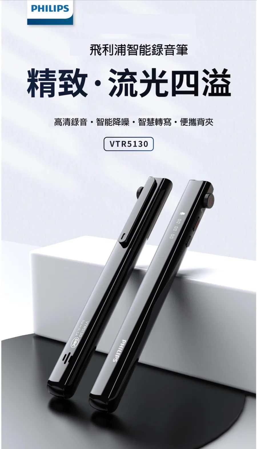 飛利浦 VTR5130 是一款 32GB 智慧錄音筆,採用筆夾式設計,輕巧便攜,適合多種場景使用。它支援智慧語音轉文字功能,涵蓋普通話、英語及粵語,搭配高靈敏麥克風和降噪技術,錄音清晰。此外,裝置內建 32GB 儲存空間,配備藍牙連接和專屬 APP,可快速編輯與分享錄音。無論是學生課堂記錄、職場會議,或是記者採訪,都能輕鬆應付。
