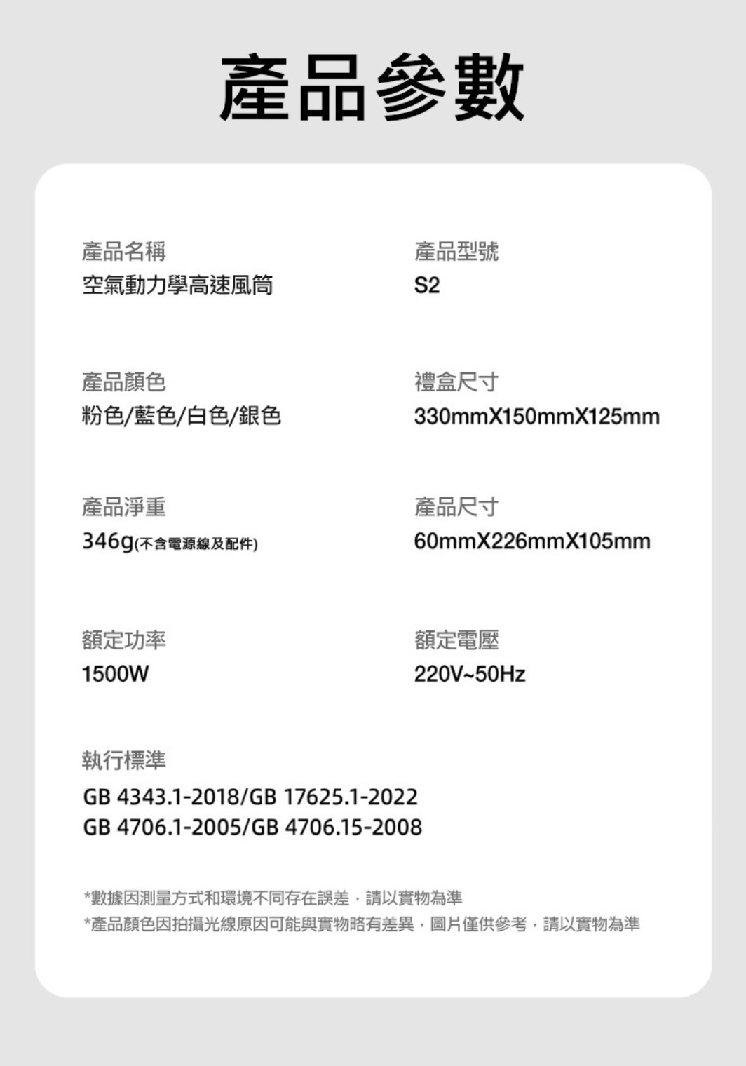 • 11萬轉高速無刷電機,疾風速乾無需等待