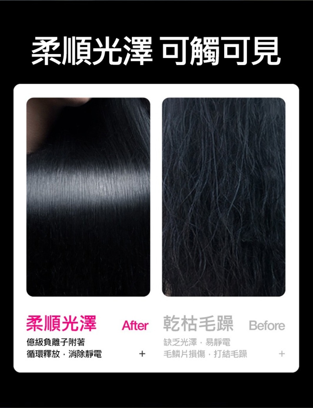 • 2億高濃度負離子護髮技術,循環釋放,頭髮順亮