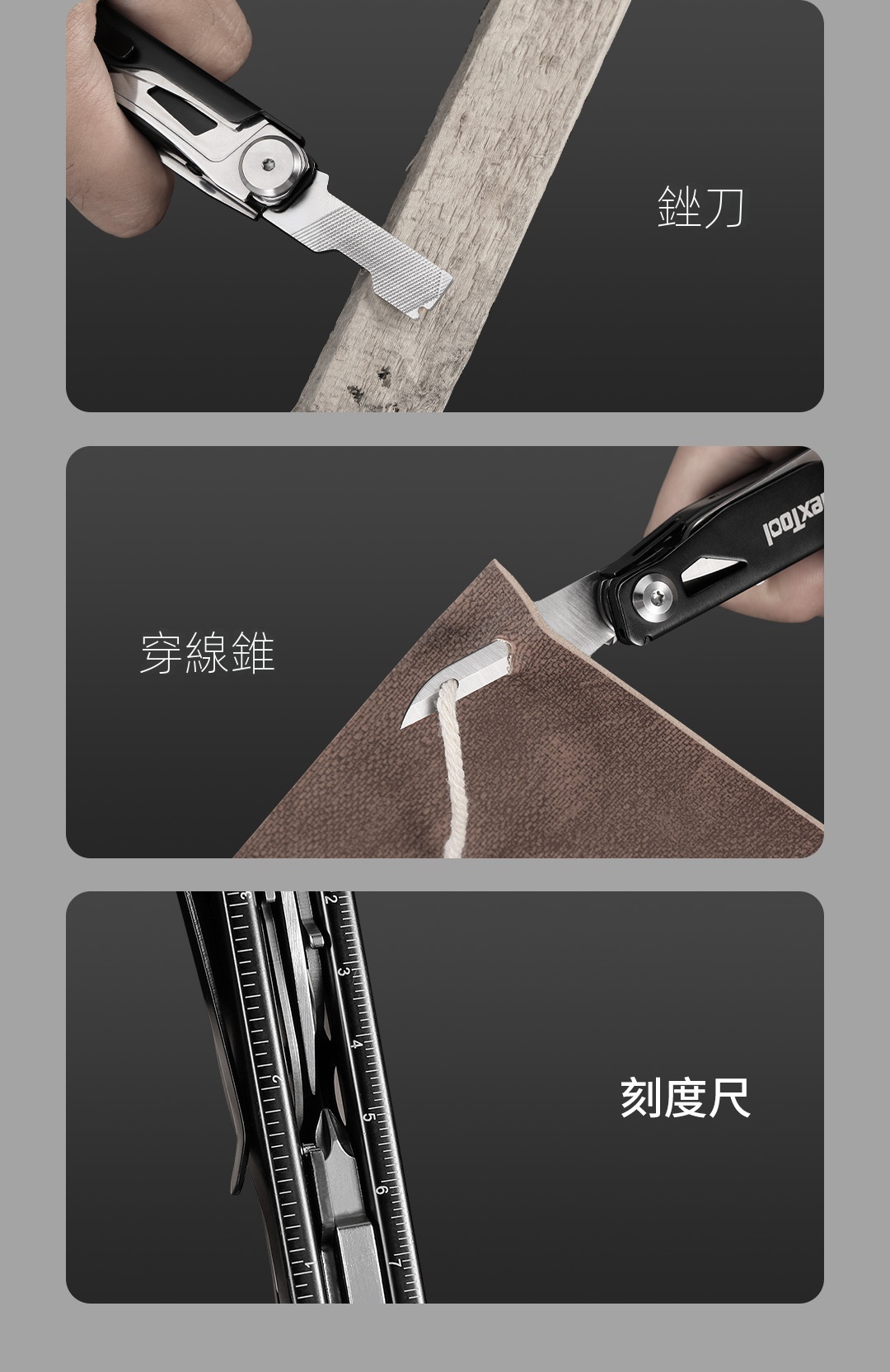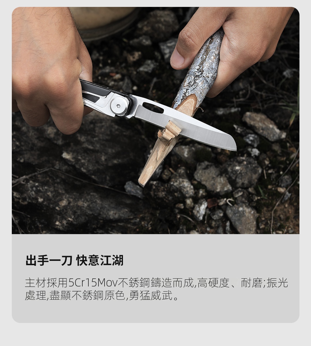 • 12合一多功能設計,涵蓋修理、打磨、削切等多種功能,適合日常、戶外、探險使用。