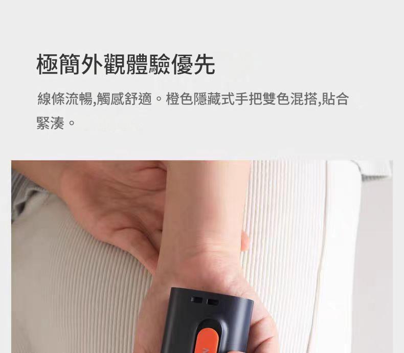 • 極簡外觀設計,橙色隱藏式手柄,雙色混搭,線條流暢,觸感舒適。