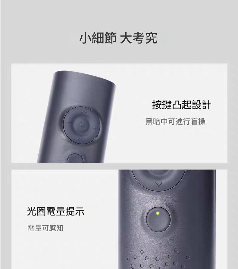 • 按鍵凸起設計,黑暗中可進行盲操;學光圈電量提示,電量可感知。
