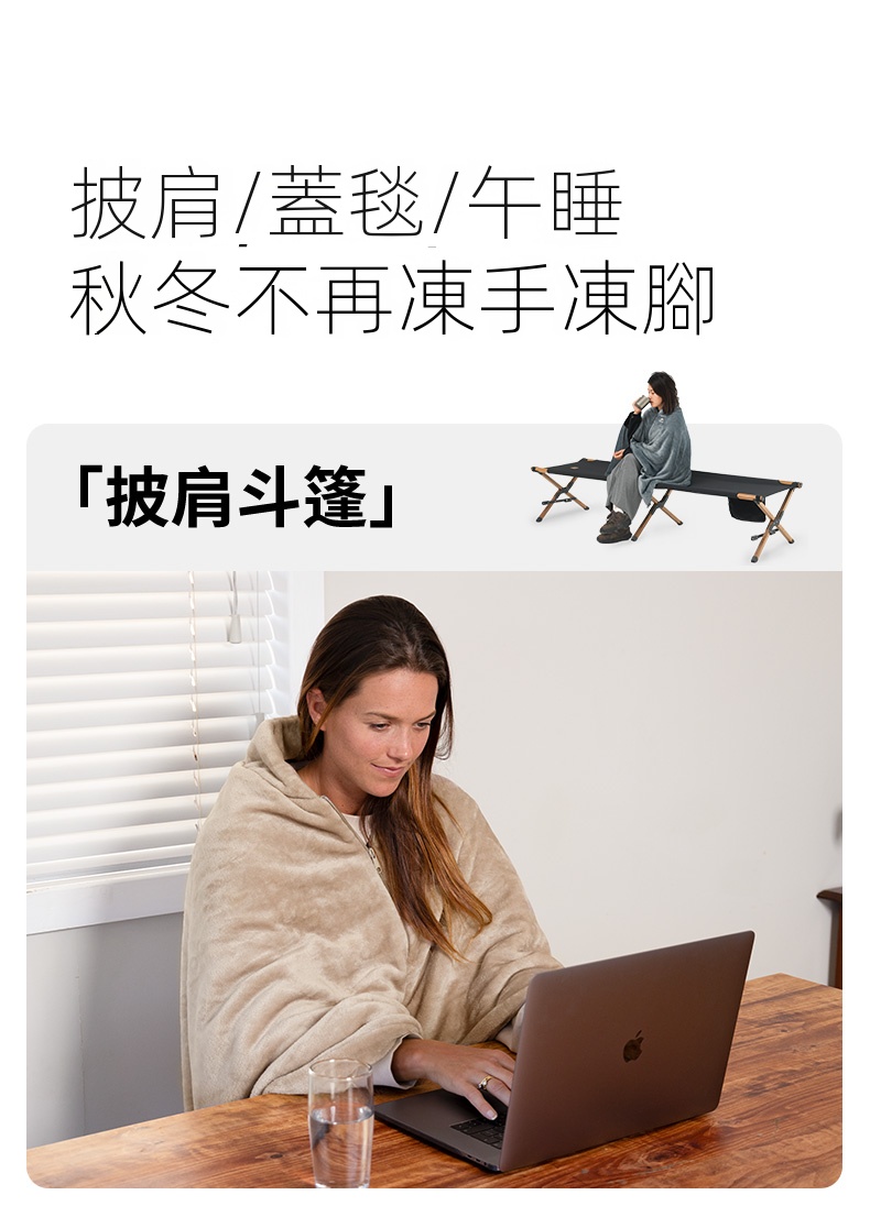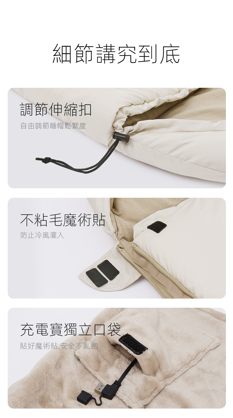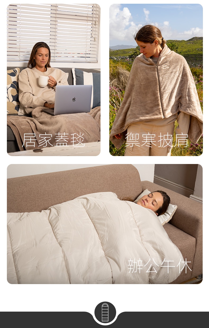 Naturehike信封式溫控棉睡袋,具備快速升溫功能,內建可拆卸法蘭絨夾層及電熱組片,連接充電寶後3秒即可加熱,提供三檔溫控調節(60°C、45°C、30°C),滿足不同需求。睡袋採用210T春亞紡面料與定型中空棉填充,輕盈保暖,適合戶外露營、居家午休等多場景使用。特殊設計的披肩和獨立暖腳區,讓秋冬不再凍手凍腳。此外,兩款單人睡袋還可拼接成雙人睡袋,增添親密感。產品通過遠紅外線發熱測試,具備保健功效,並通過CE認證,安全可靠。
