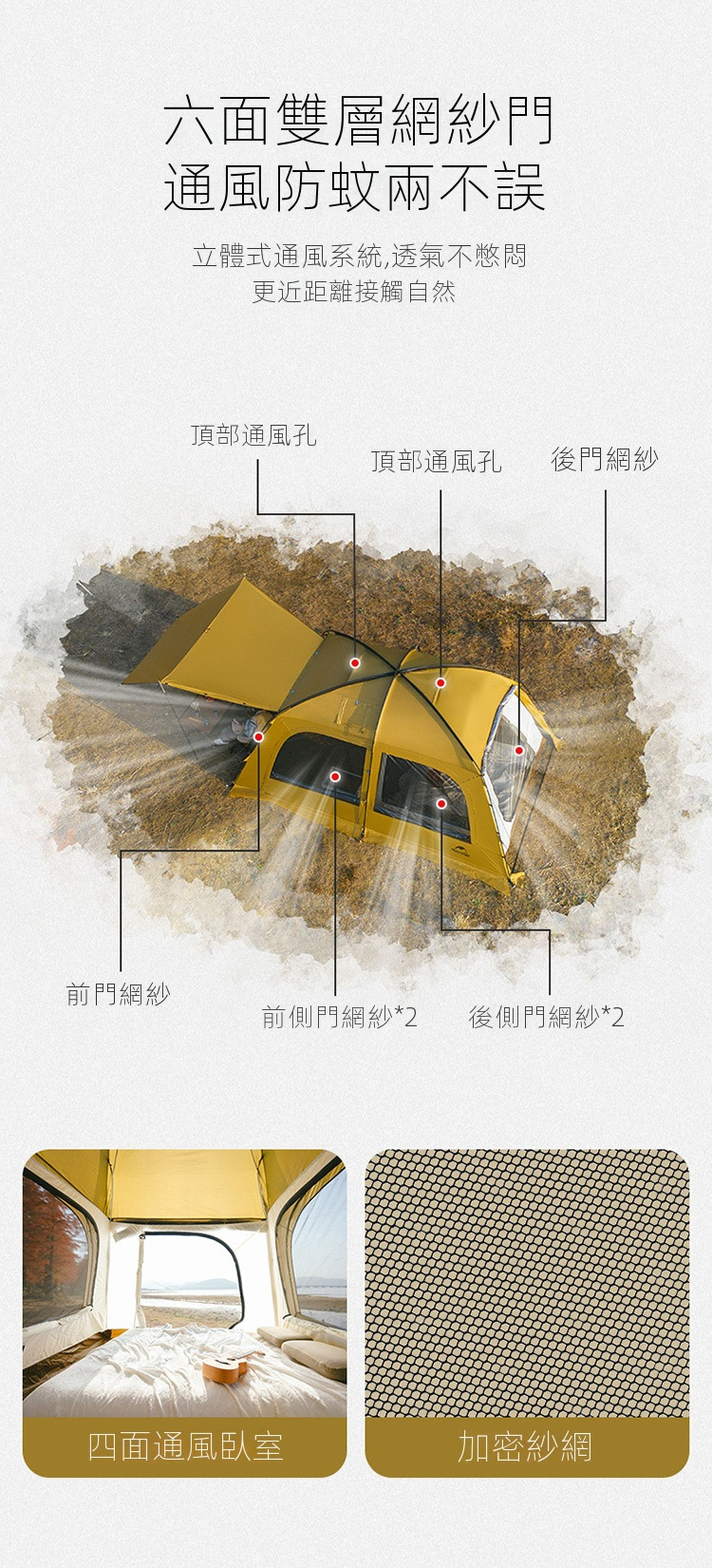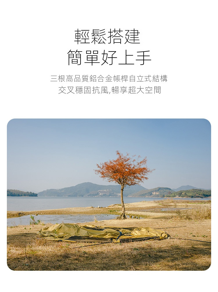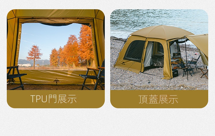 Naturehike Dune 10.9帳篷的TPU門優勢眾多,為露營帶來便利。防水性上,TPU材質高度防水,與帳篷主體防水設計配合,大小雨能阻擋雨水滲入,保持內部乾燥。耐磨方面,戶外環境複雜易摩擦碰撞,TPU門耐磨性佳,頻繁使用及接觸不易刮傷,延長使用壽命、降低成本。透光性良好,白天陽光能透過使帳篷內明亮,減少對照明設備依賴,還可觀察外部。此外,TPU門設計合理,開關順滑,單手就能快速開合,提升了使用體驗 。