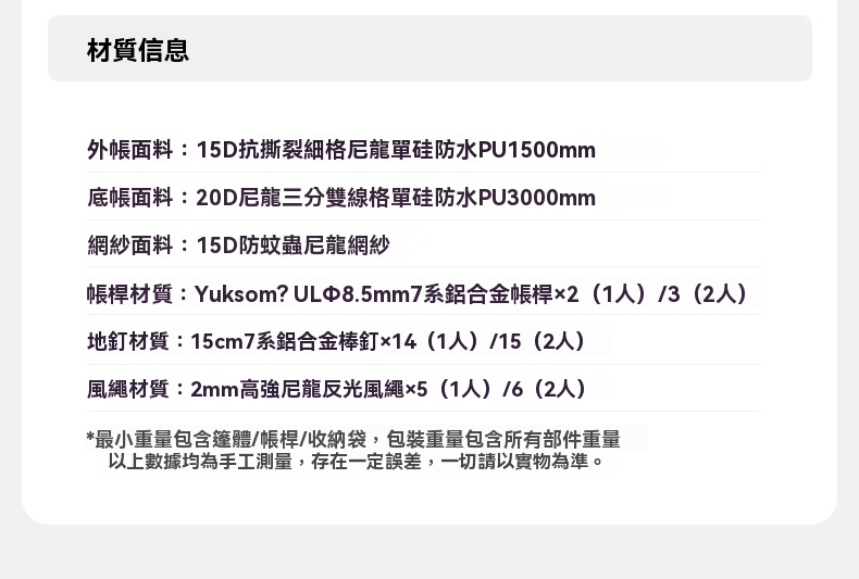 Naturehike達坂雙人款隧道型健行帳篷,專為戶外愛好者打造。採用15D超輕塗矽布料,防水PU1500mm+,可抵禦風雨。收納體積小巧,方便攜帶。非自立式設計,搭建簡單,5分鐘內即可搞定。內部空間寬敞,頭頂高度適宜,腳步空間也充足。前廳可放置裝備。在3000 - 4000公尺海拔高原測試表現良好,是徒步露營的理想選擇 。