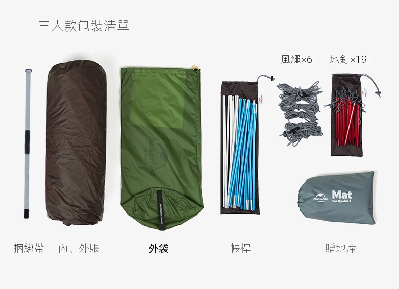 • 外帳:20D 尼龍矽膠防水 4000mm