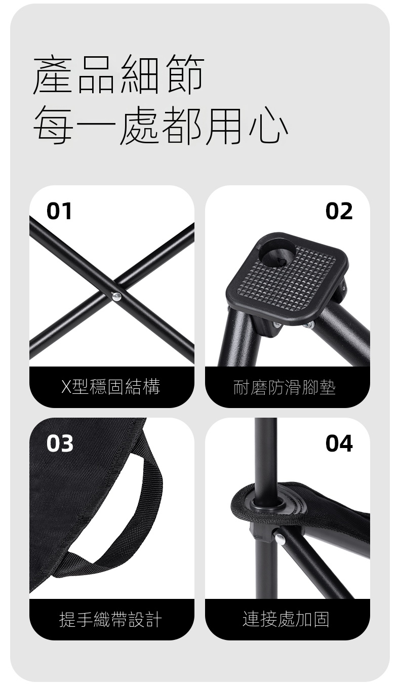 • X型穩固結構,耐磨防滑腳墊,提手織帶設計,連接處加固