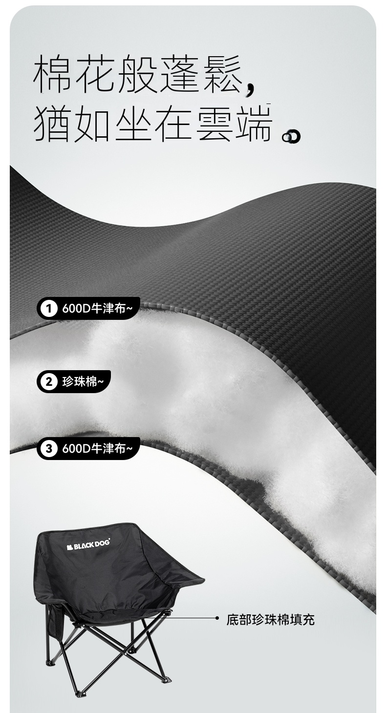 BLACKDOG浮月Pro露營月椅(CBD2450JJ018),是露營愛好者的絕佳選擇。它採用加粗碳鋼材質,堅固耐用,搭配600D牛津布,耐磨且防水,承重力高達約300斤,穩定性極佳。擁有6層加厚夾棉,保暖舒適,60cm的超寬坐面,讓你久坐不累。獨特的扶手設計,進一步提升了使用體驗。椅子一秒速開速收,輕鬆便攜,還設有多個置物口袋。無論是露營、野餐或戶外釣魚,都能為你帶來愜意的休閒時光。