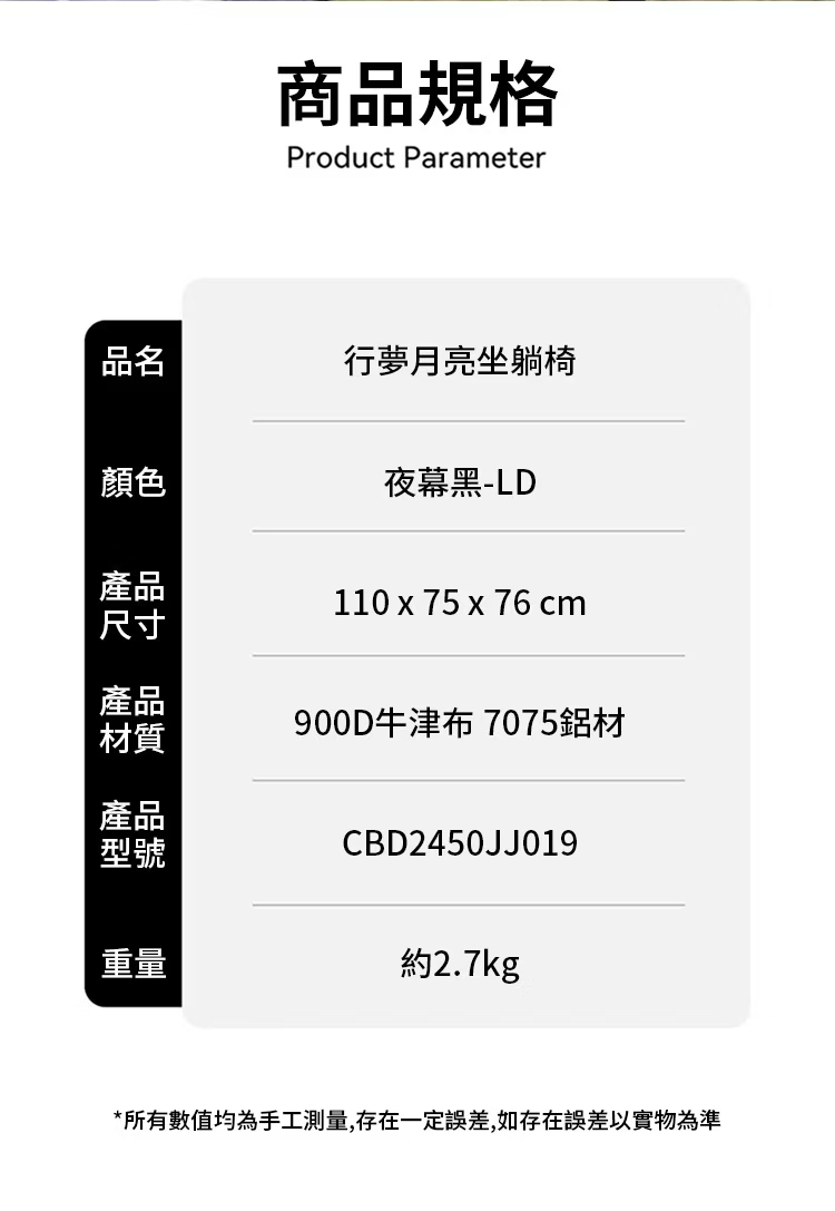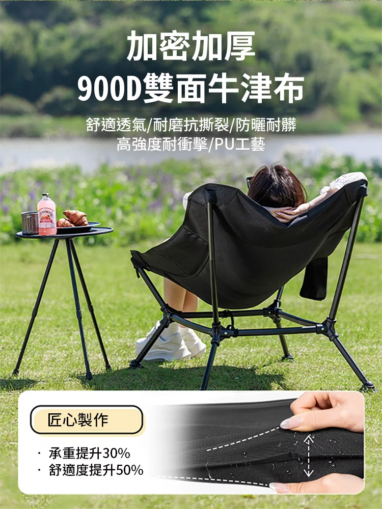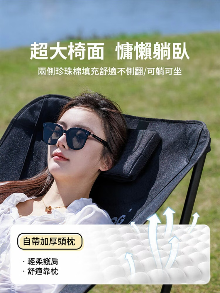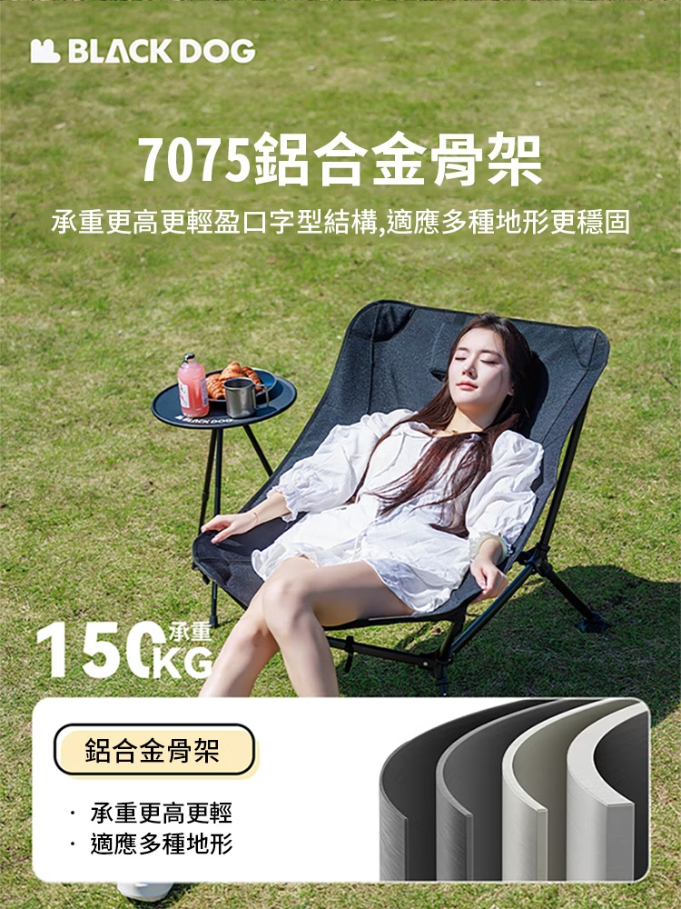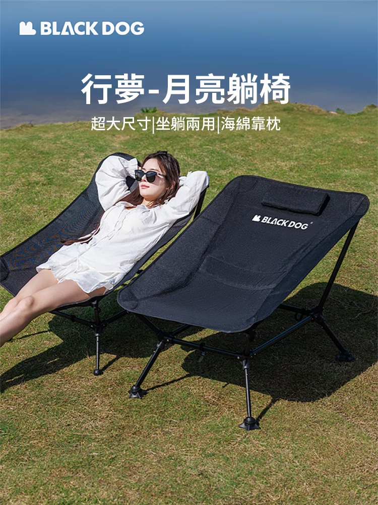 BLACKDOG行夢露營月亮躺椅(CBD2450JJ019),是戶外休閒的理想選擇。它採用獨特H型中架,搭配超輕鋁合金與ABS工程塑料,結實穩固,穩定性極佳。椅面選用耐磨抗撕裂牛津布,舒適耐用。擁有兩檔高度調節,能適應不同場景需求。寬敞的椅面設計,帶來更舒適的包裹感,讓你愜意享受戶外時光。雖然收納尺寸較大、重量偏重,但在舒適度和穩定性上表現卓越,承重可達120kg ,是露營、野餐等戶外活動時放鬆身心的好搭檔 。