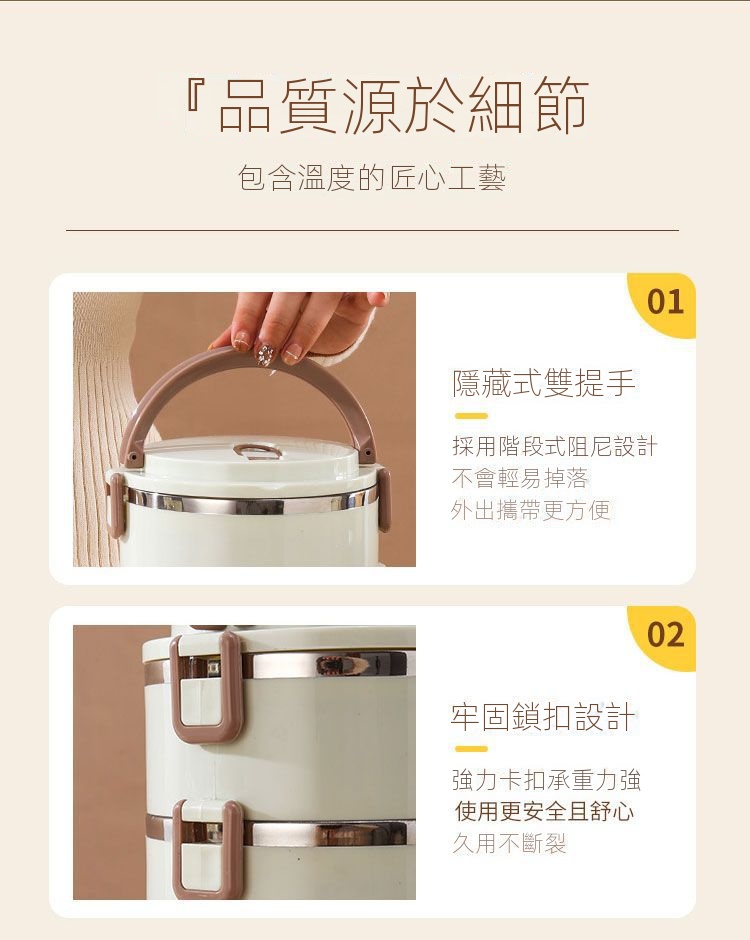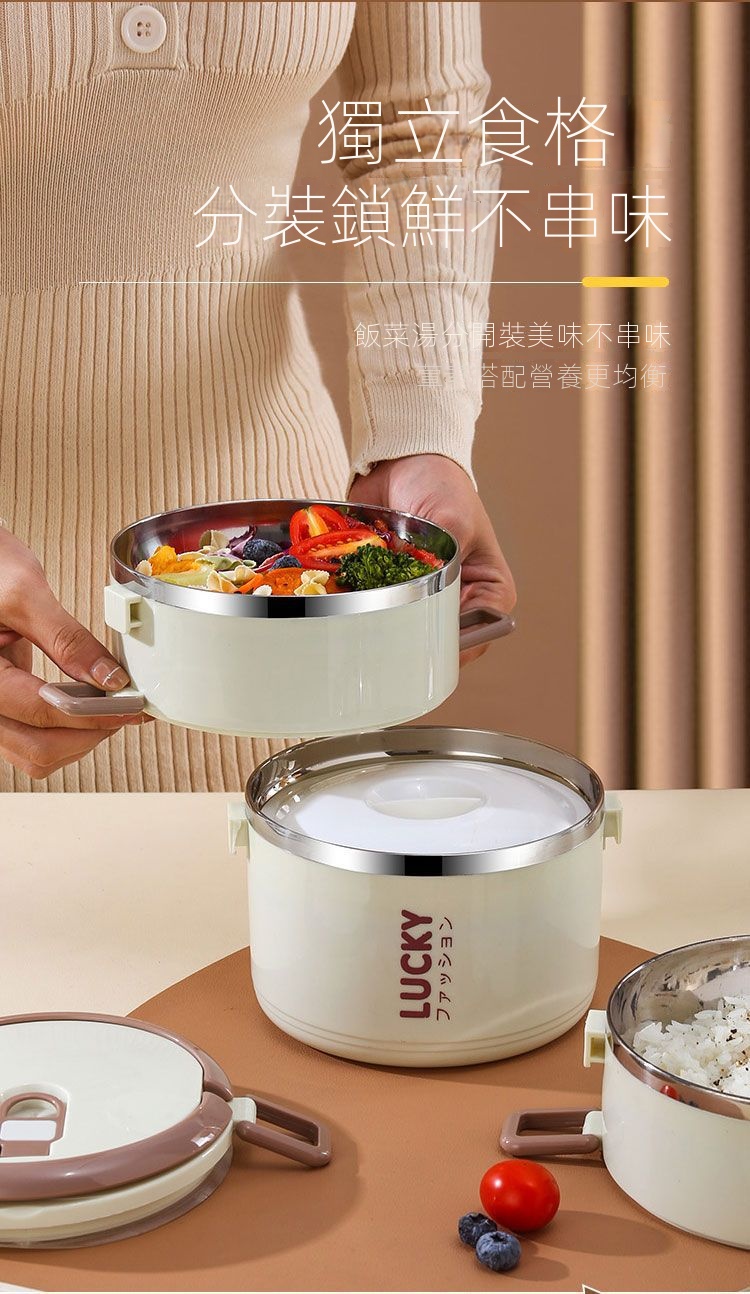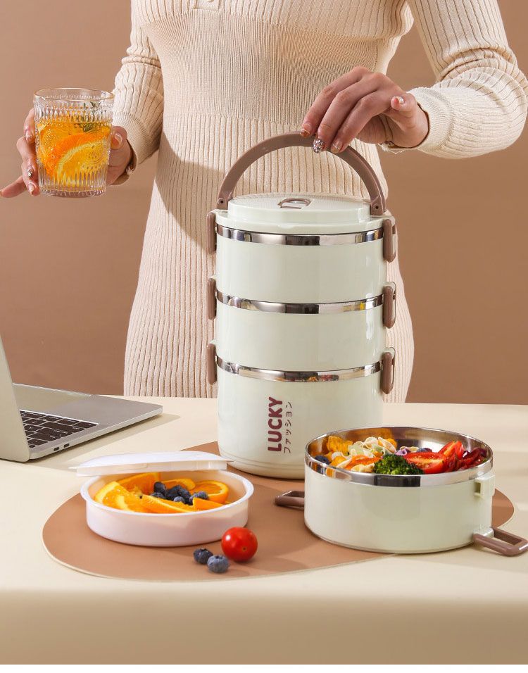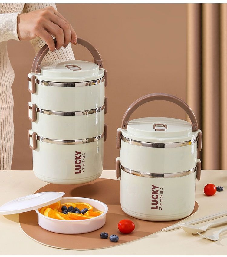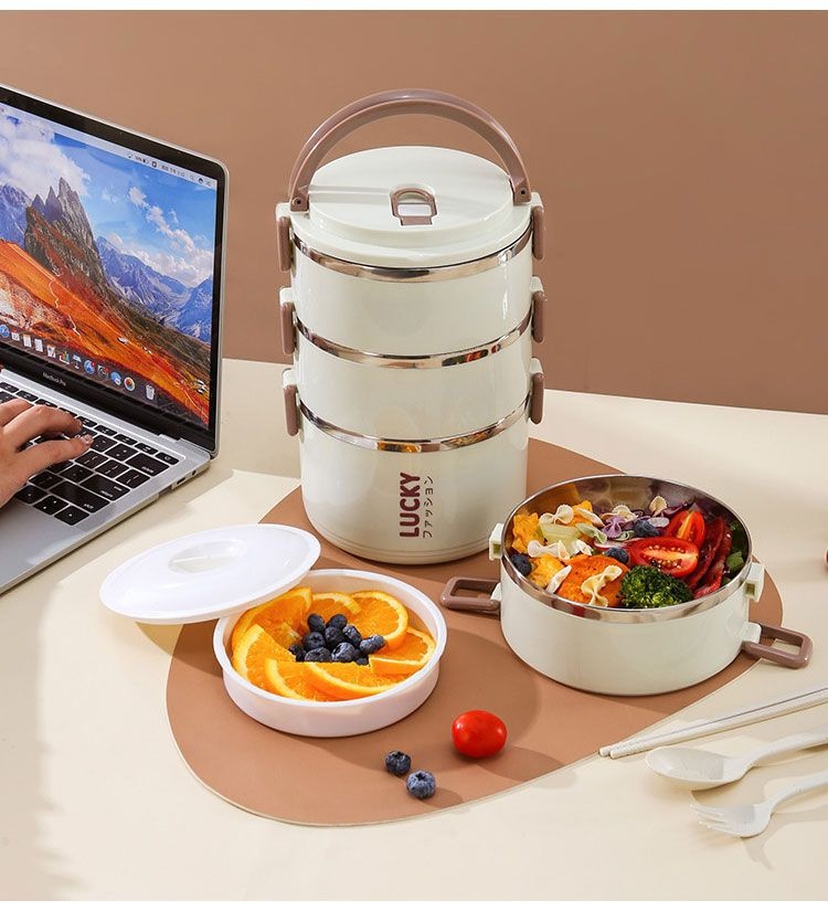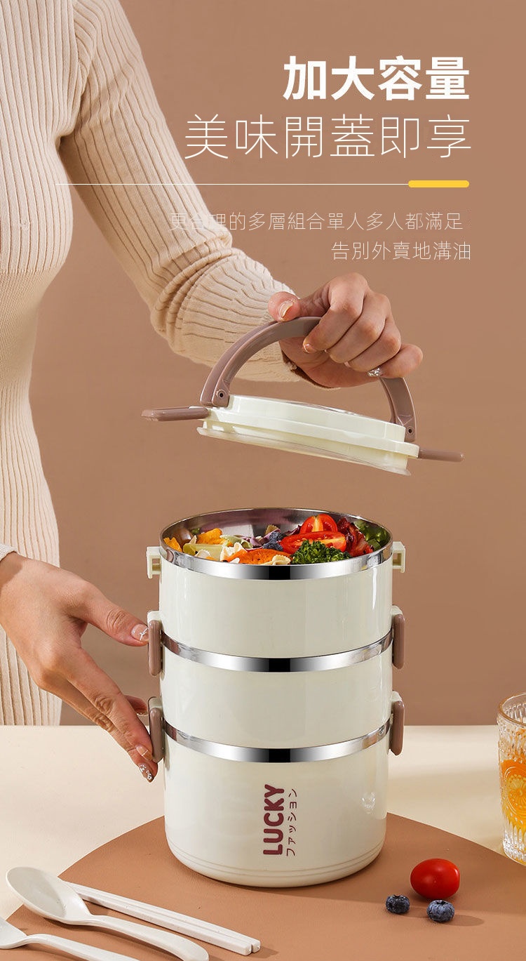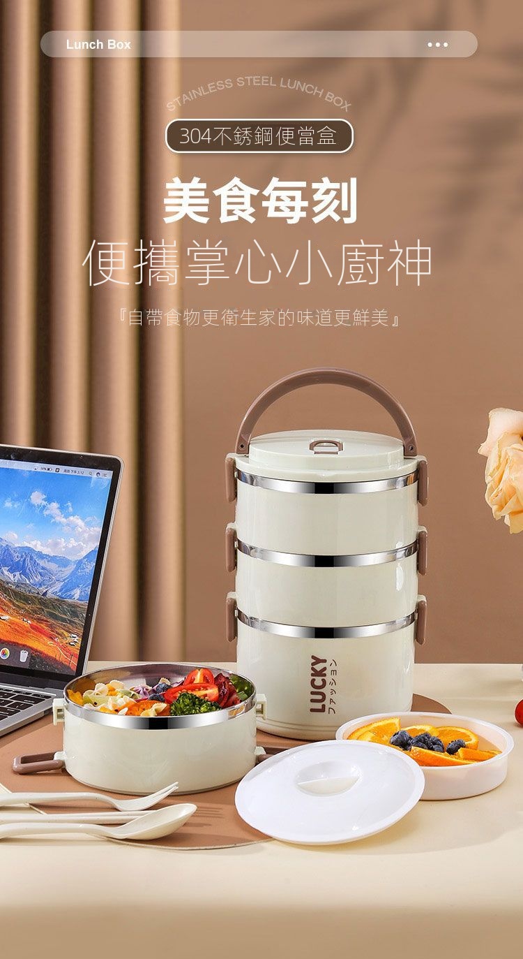 Outlet Express HK 生活百貨城在香港觀塘提供 多層便攜保溫飯盒 - 3層 | 304不鏽鋼内膽加鋼印 | 配備3個餐具及米白保溫袋 在那裡買邊到買或邊度買代理資料及價錢實惠借批發優惠以及公司學校報價,更可送到香港或澳門而部份產品比團購更優惠,更可以為你推薦推介相似產品及優點缺點,請留意我們最新產品價格更新。