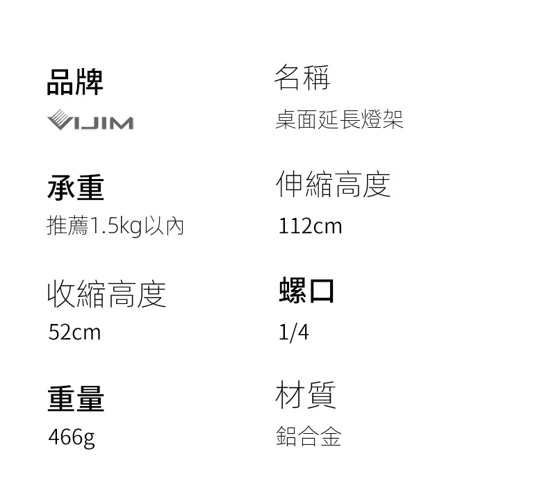 • 名稱:Ulanzi VIJIM LS01 桌面可延長燈架