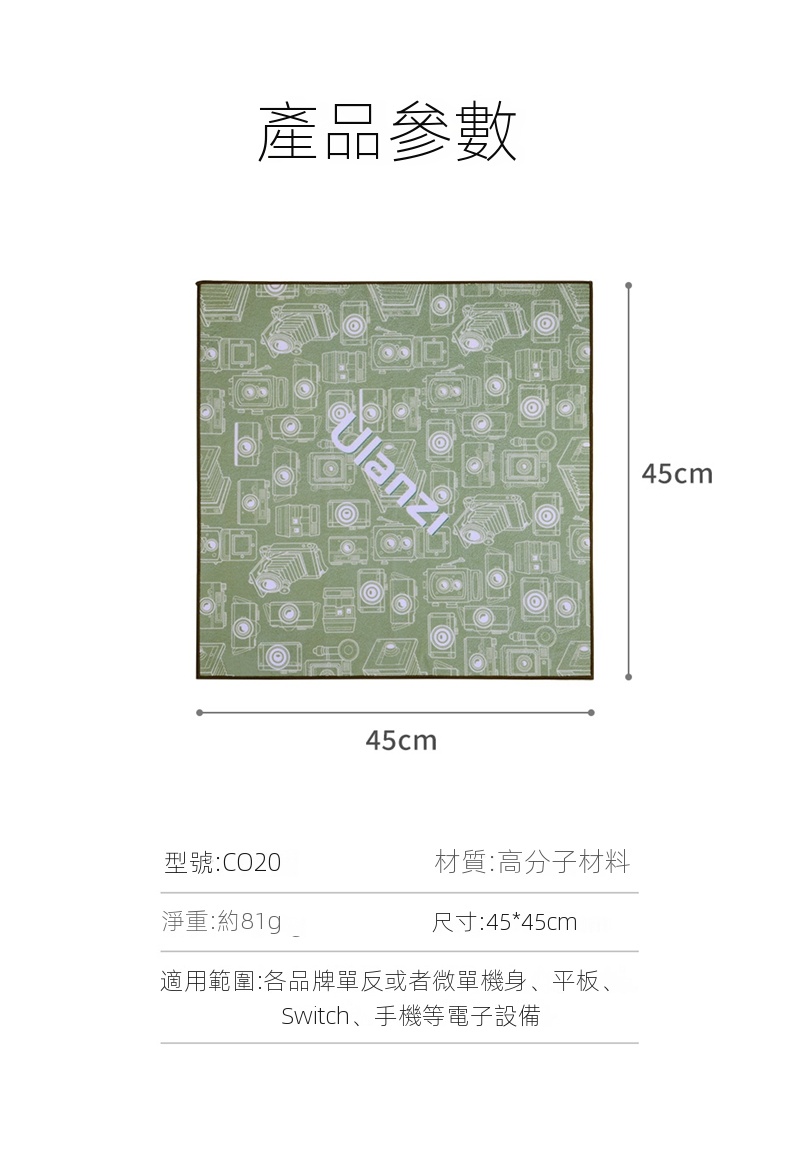 Ulanzi CO20 45cm魔術萬用相機收納布印花版,是攝影愛好者的貼心伴侶。它尺寸為45cm,大小適宜,可輕鬆收納小型相機與單一鏡頭,無論是微單或Sony等多種相機皆適用。其採用的布料柔軟堅韌,具備自咬特性,結實耐用,包覆後手提也不會散開,可有效保護相機免受刮擦與輕微撞擊。獨特的印花設計,不僅增添了個性,也讓相機的取出更具樂趣。而且它便於攜帶,能輕鬆折疊成小尺寸放入背包,為旅行攝影提供了極大便利 。