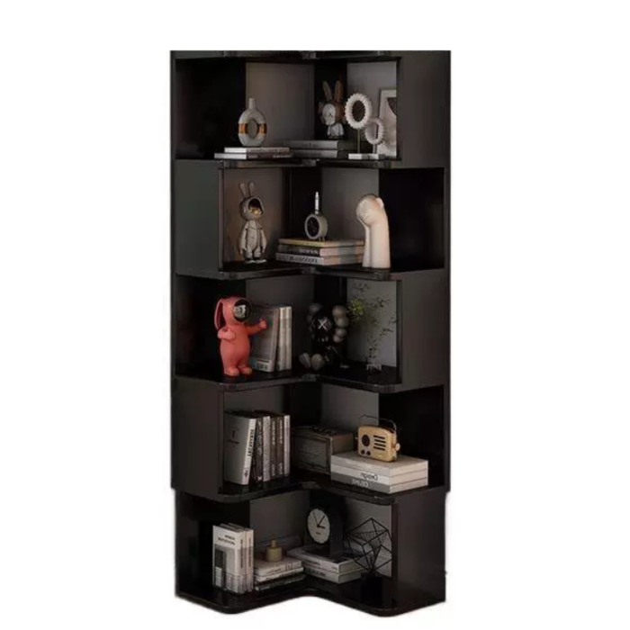 實木落地轉角櫃 - 5層黑色 | L型拐角櫃 | 多元儲物收納裝飾