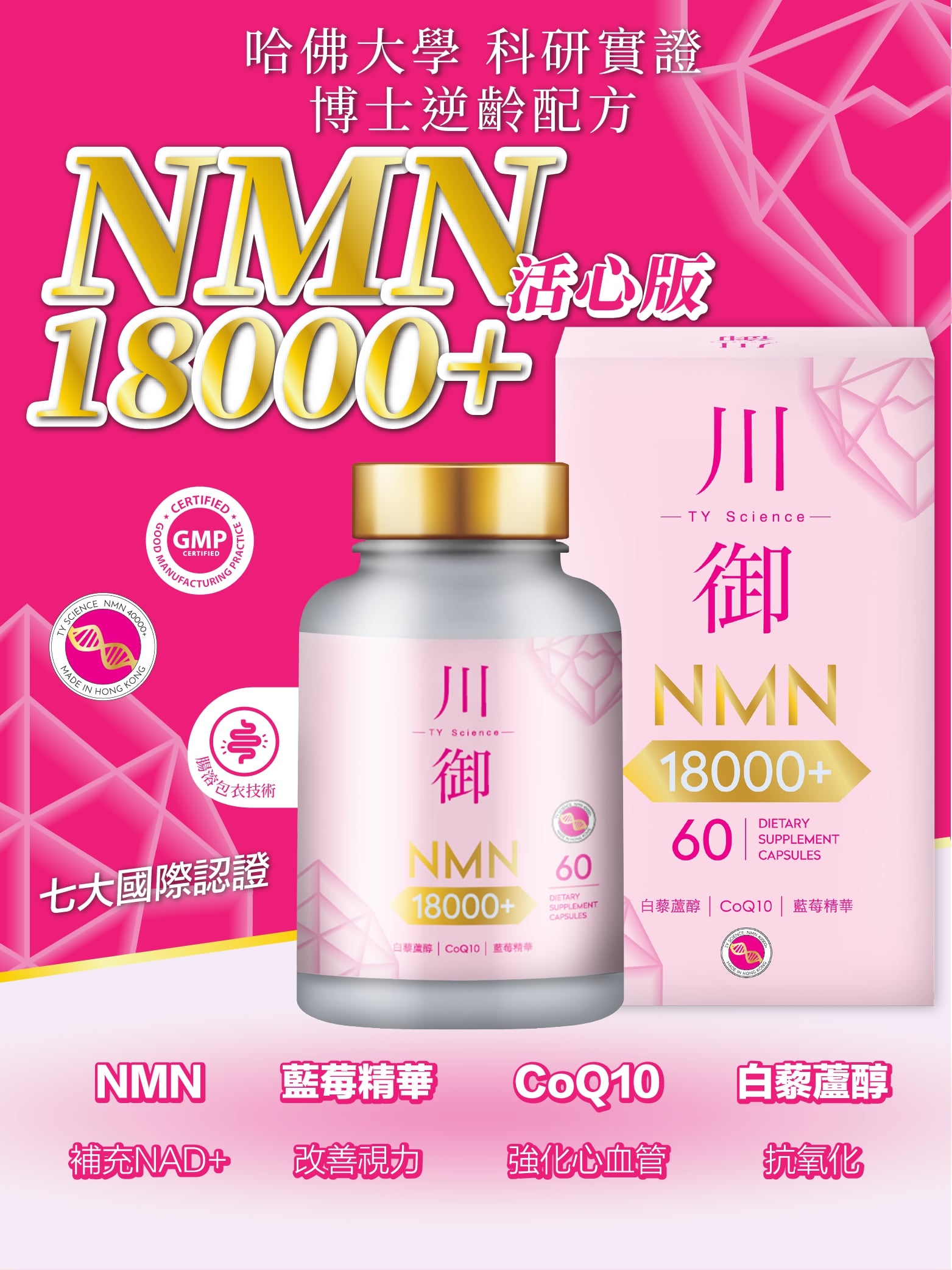 TY Science 川御 NMN18000+ 活心版(60粒裝) | 逆齡抗衰老 | 激活膠原蛋白再生 | 維持心血管健康和血液流動