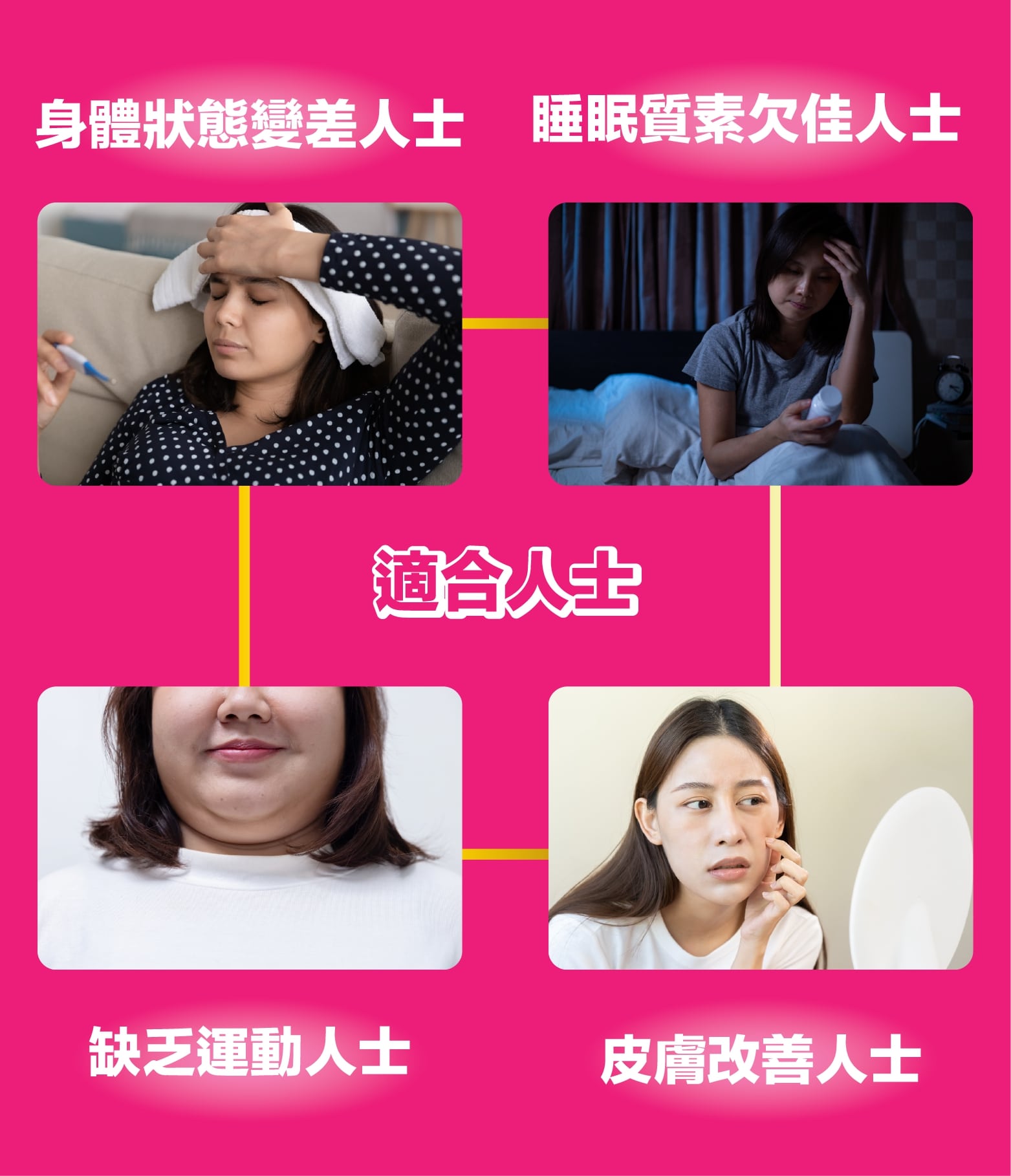 特別適合出現身體狀態變差、睡覺有問題、易攰、缺乏運動、腸胃欠佳及貪靚人士,有助抗衰老、增強免疫力!