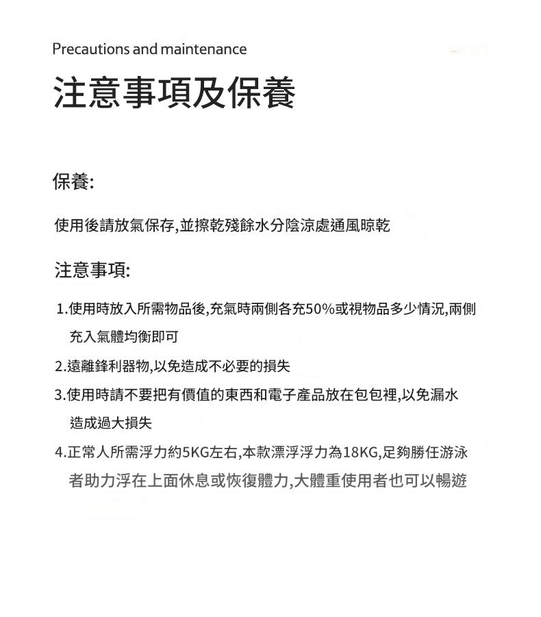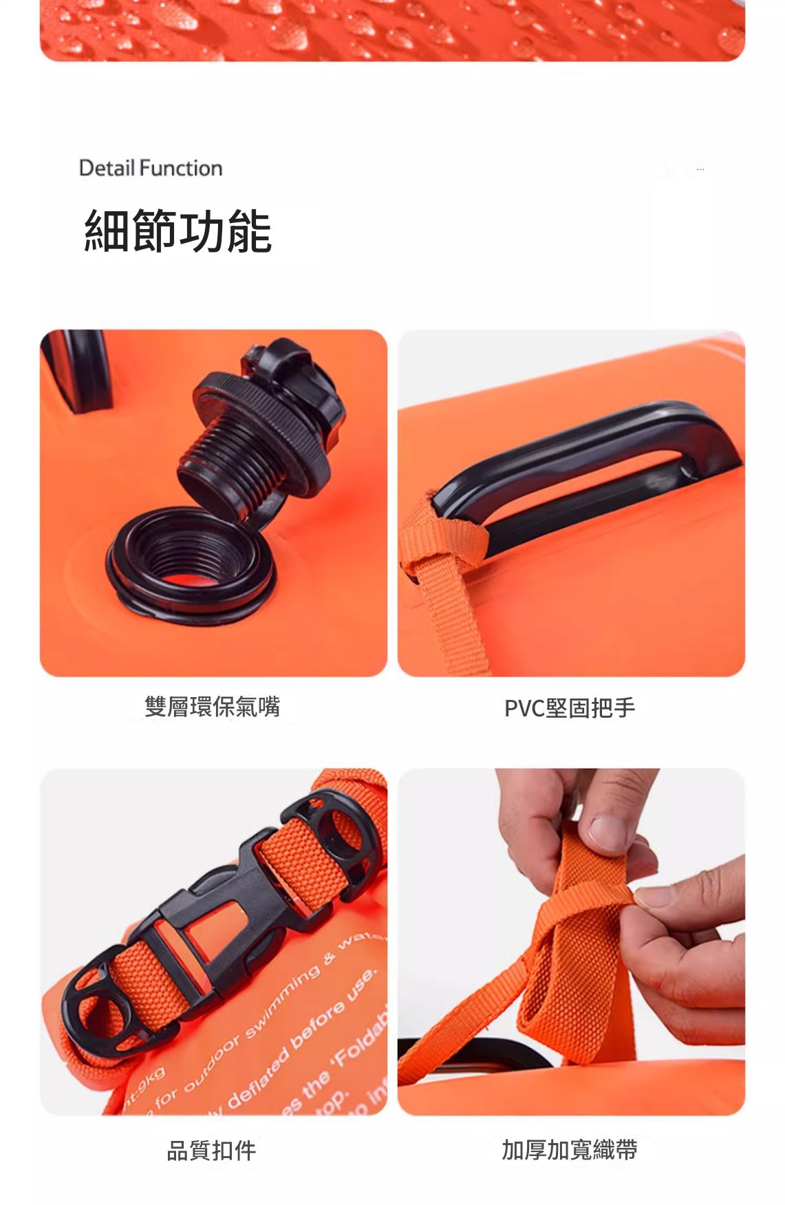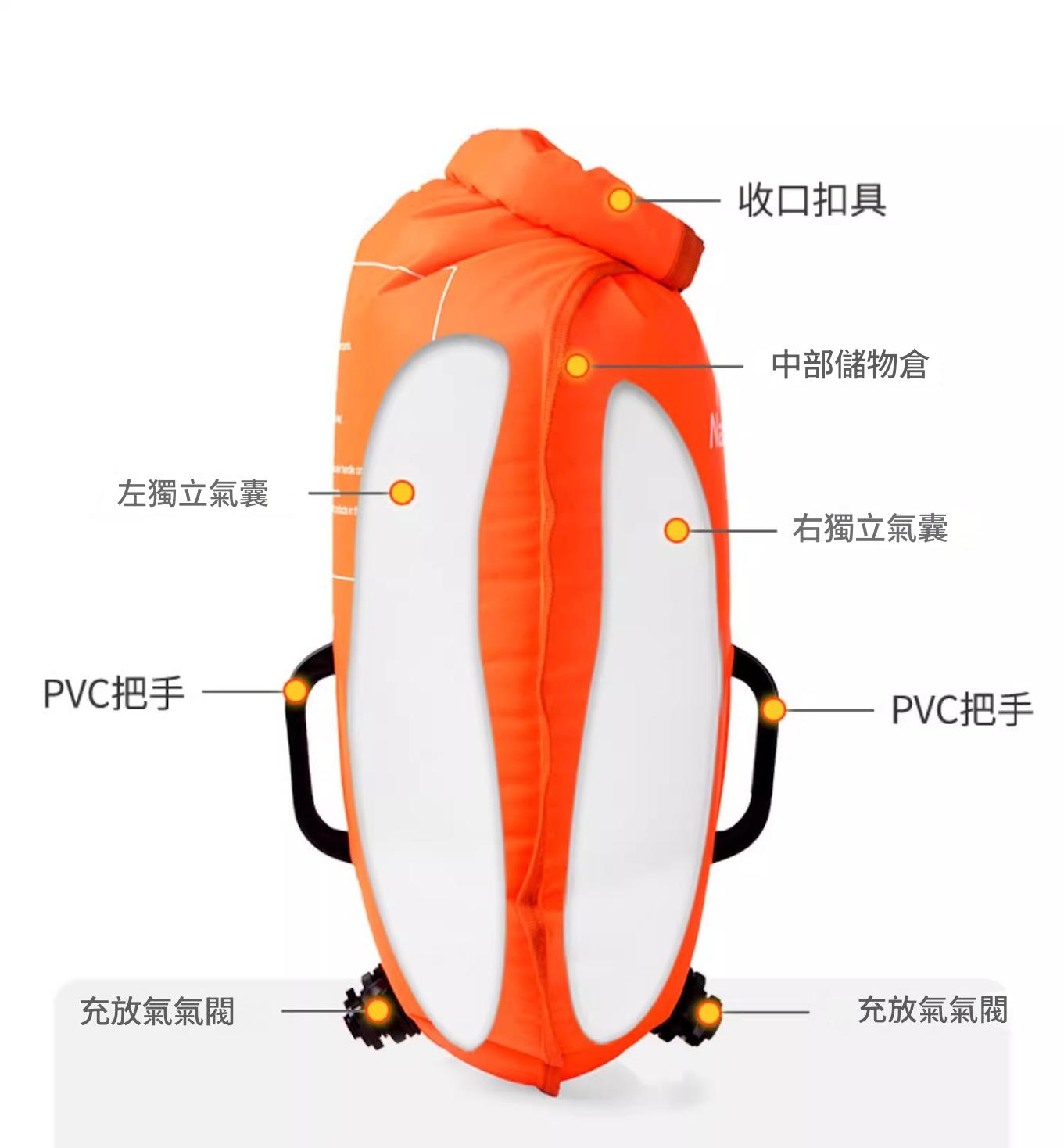 Naturehike 18L三層充氣防水袋是戶外愛好者的必備好物。它尺寸為50*25*20cm,容量18L,空間規劃合理,可輕鬆收納出行必備物品。採用約65紗加厚防水耐寒尼龍,質地堅韌,耐磨抗撕裂,無論是戶外剮蹭或低溫環境都能應付自如。獨立雙氣囊設計,不僅提供更大浮力,即使一個氣囊出現問題,另一個也能保障安全。雙層氣嘴設計,充氣放氣快速方便。防水性能卓越,達到IPX8級深度防水,ABS封口夾搭配鎖扣旋鈕,多重密封確保滴水不漏。無論是水上運動還是潮濕環境下的探險,它都能全方位保護你的物品,讓你安心享受戶外時光。
