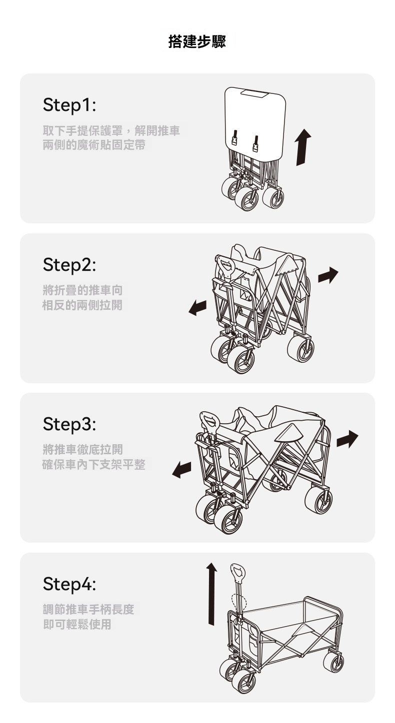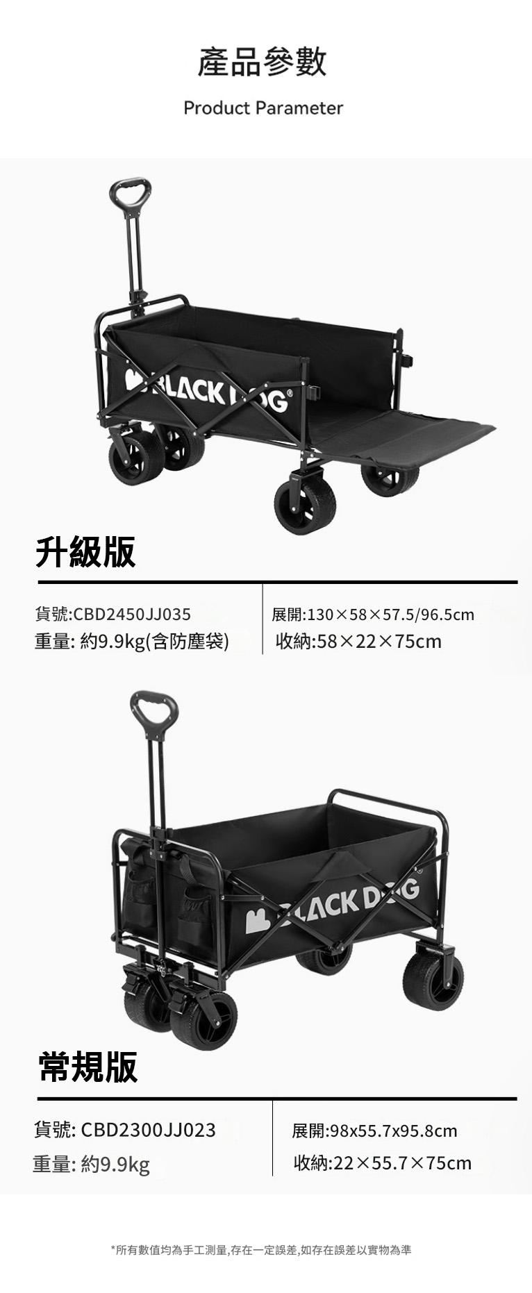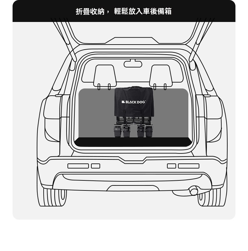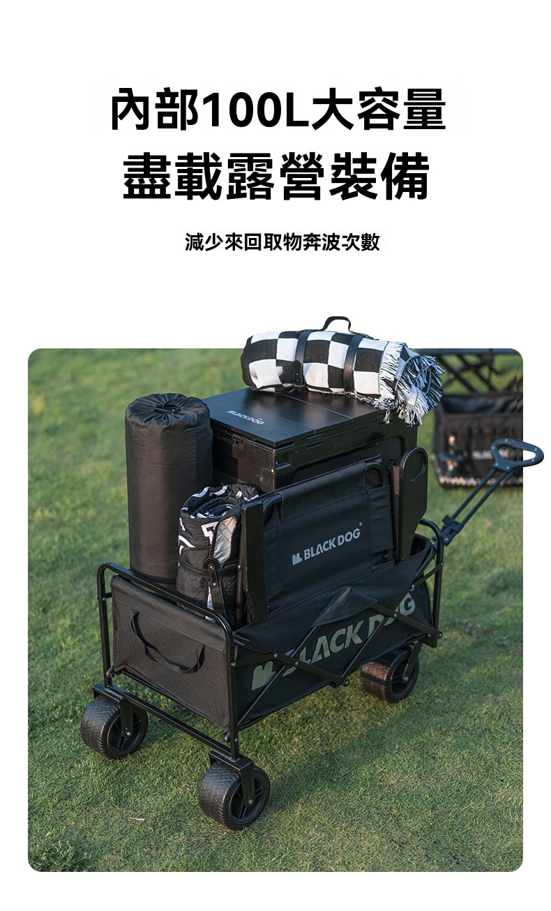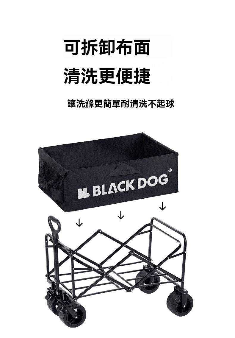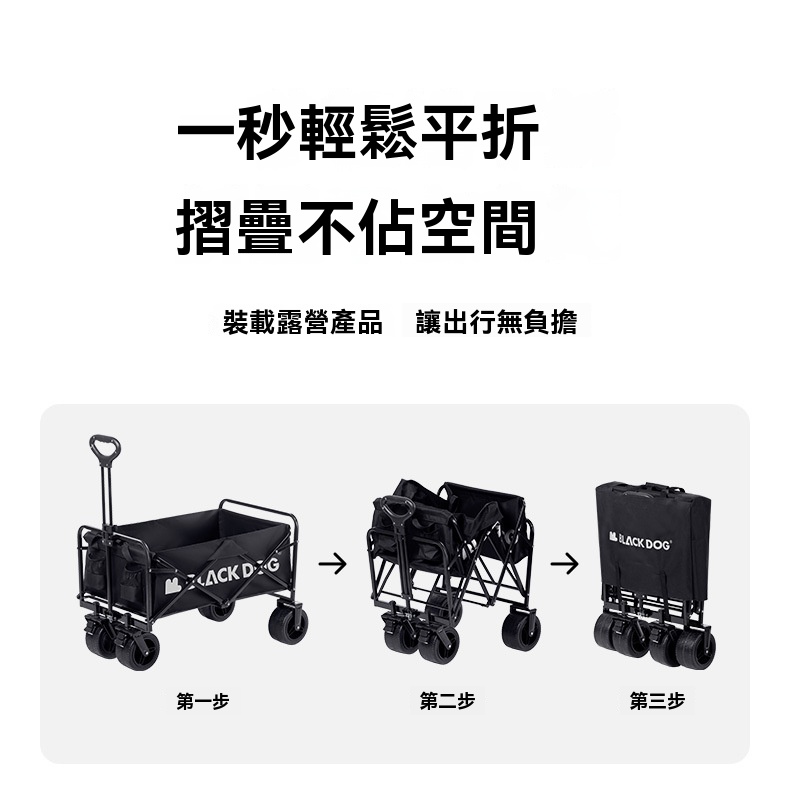BLACKDOG 漫游 摺叠露營車(CBD2450JJ035) - 黑色(升級版) | 軸承萬向輪 | 可拆洗設計