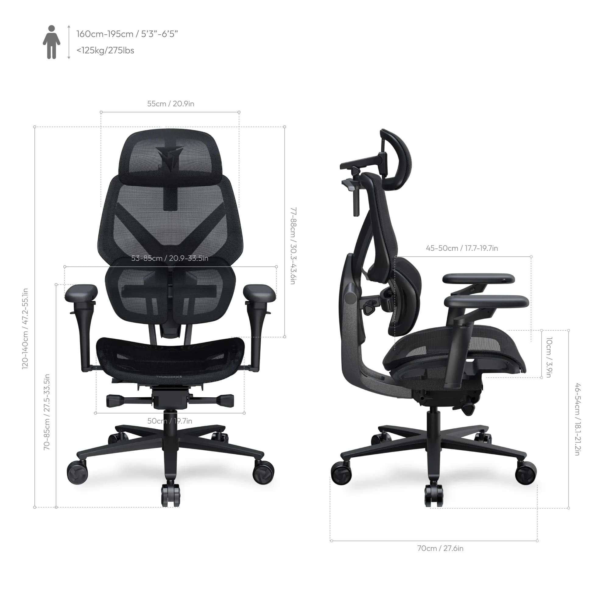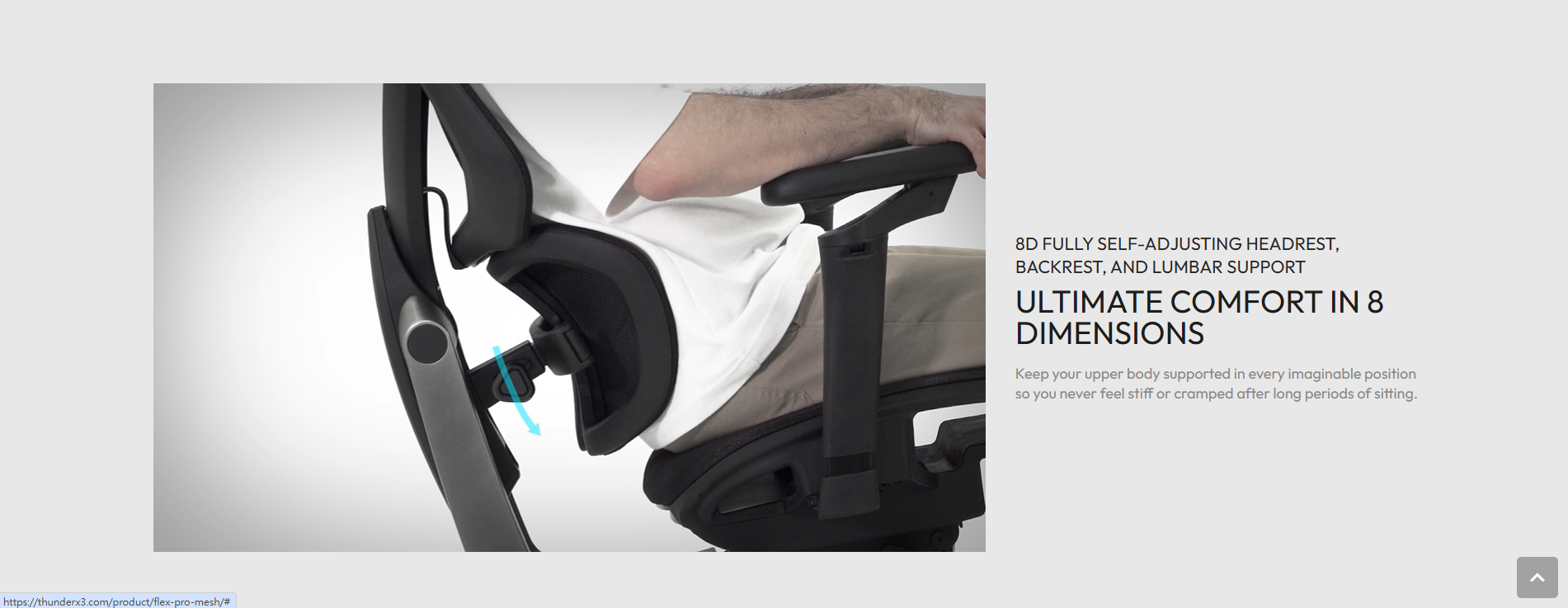 ThunderX3 Flex Pro人體工學網椅(黑色款),將舒適與人體工學設計完美融合。其椅背採用分離式活動腰靠,能貼合脊椎曲線,提供優異支撐,有效緩解腰部壓力。 8D完全自調頭枕、靠背和腰部支撐,可根據你的動作自動調節,適應不同姿勢。透氣網布材質,確保空氣流通,久坐也能保持清爽。 19D可調性,涵蓋高度、深度、角度等多方面,讓你找到最適合自己的坐姿。 4級氣舉裝置經BIFMA X5.1認證,穩固可靠,能承受較大重量 。無論是辦公室還是娛樂,它都能為你帶來舒適體驗。