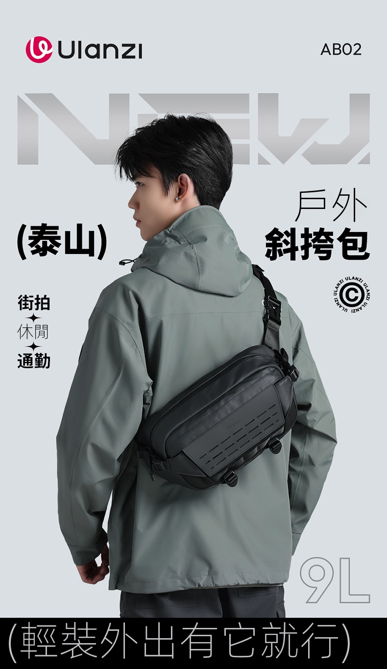 Ulanzi AB02 泰山9L相機斜背包 - 黑色 | 口袋可擴容 | 個性拓展 | 香港行貨