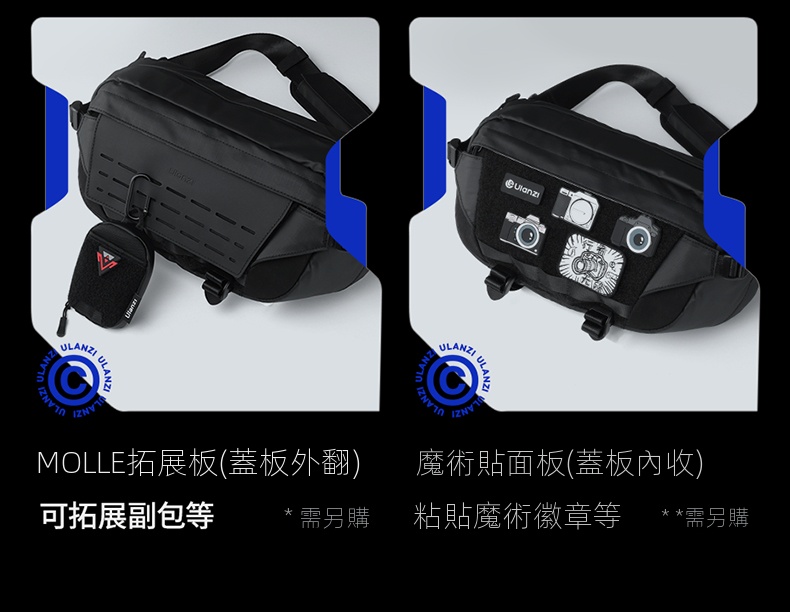 • MOLLE拓展板和魔术貼面板,支持DIY裝飾與擴展功能