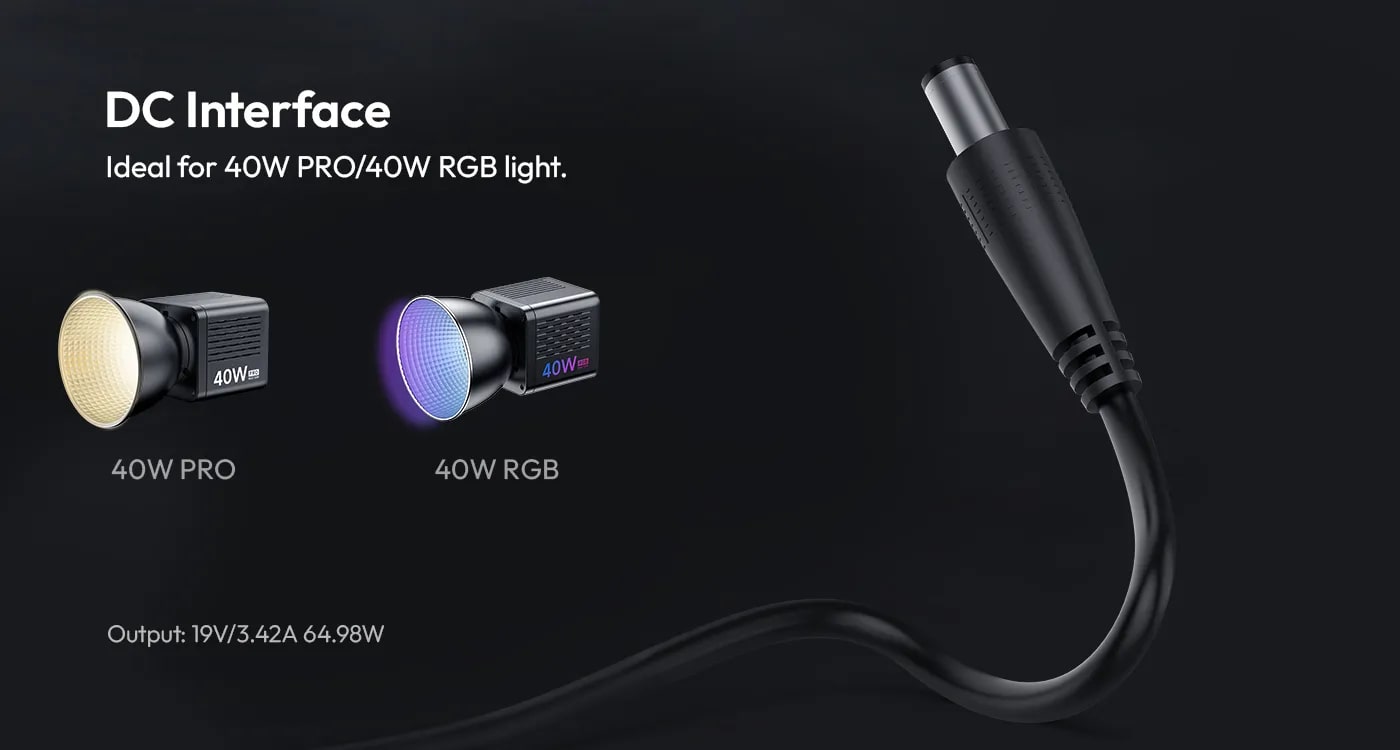 • DC接口規格:適用於40W PRO及40W RGB COB燈