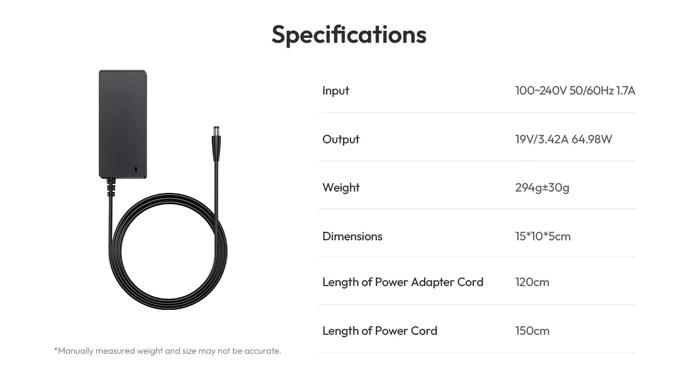 • 寬電壓輸入:輸入電壓範圍為100 - 240V、50/60Hz、1.7A ,能適應全球多數地區市電環境,差旅、多地作業不受限。