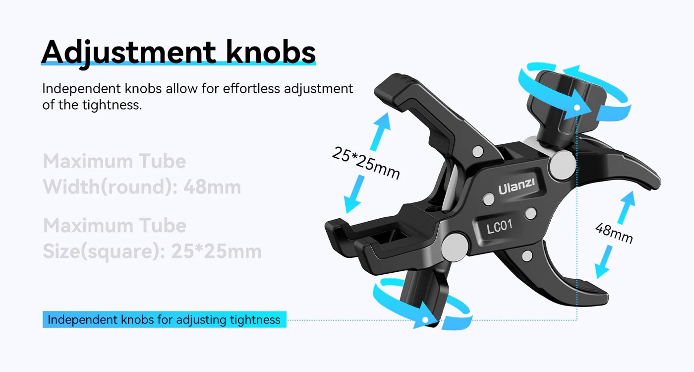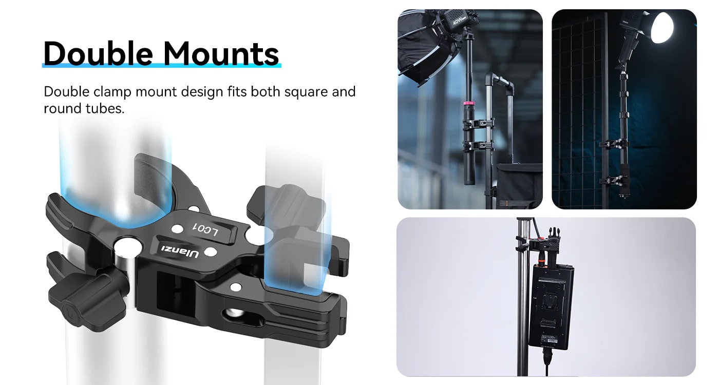 Ulanzi LC01 方園雙頭管夾 - 黑色 | 獨立旋控 | 穩固夾持 | 香港行貨
