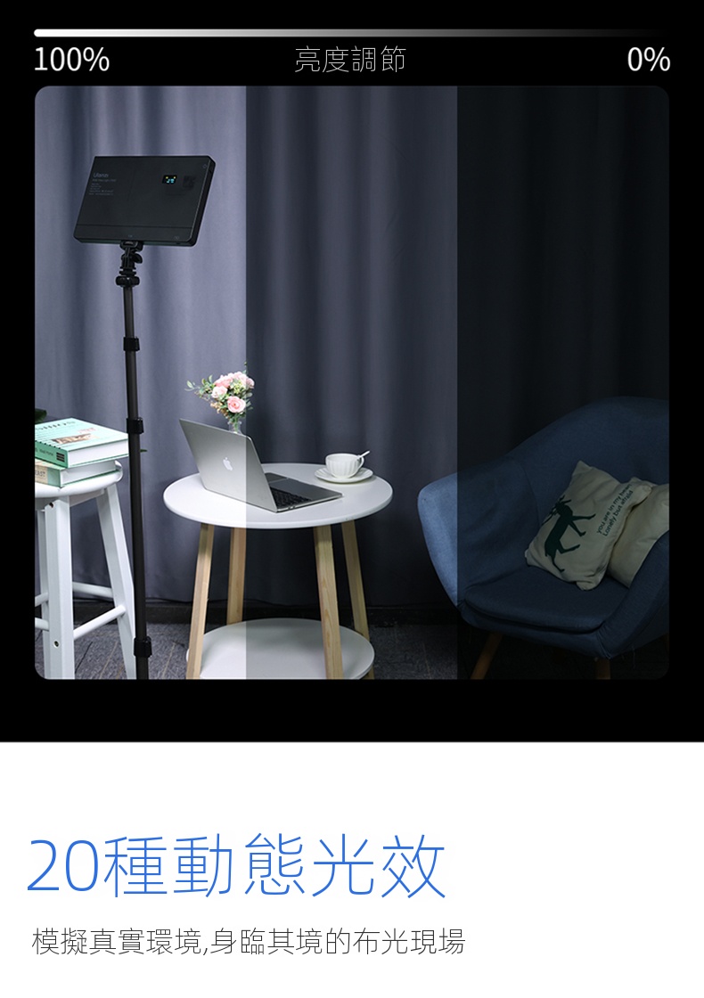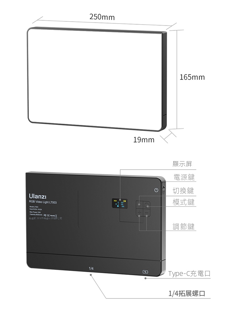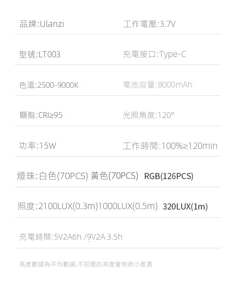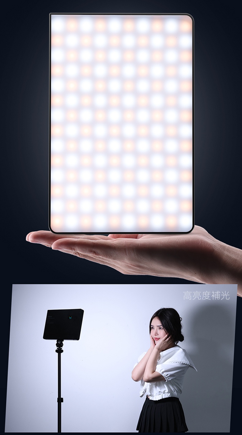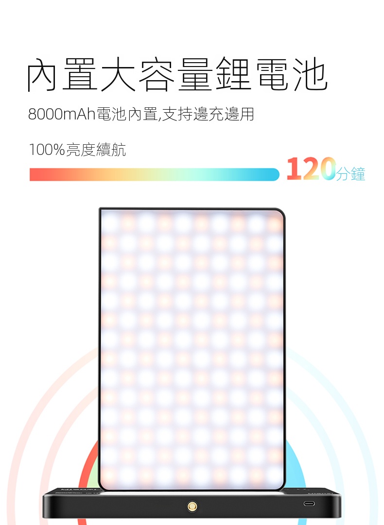 Ulanzi LT003 10吋全彩平板攝影補光燈,是攝影愛好者的得力助手。它功率為15W,擁有266顆燈珠與120度大發光角度,光線均勻柔和。顯色指數CRI達95以上,高度還原色彩。支援2500K - 9000K的CCT色溫調節,能適應不同場景氛圍。 HSI全彩RGB模式下,可自由調整亮度與飽和度。還設有20種動態光效,像模擬閃電、警笛等,一鍵調用,增添創意。內建8000mAh電池,滿電100%亮度可續航120分鐘,支援邊充邊用。燈體輕薄,底部1/4拓展螺絲方便連接設備,無論是夜景街拍或室內創作,都能輕鬆駕馭 。