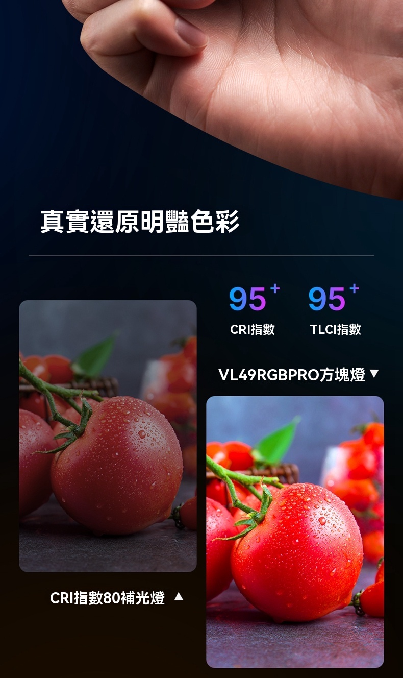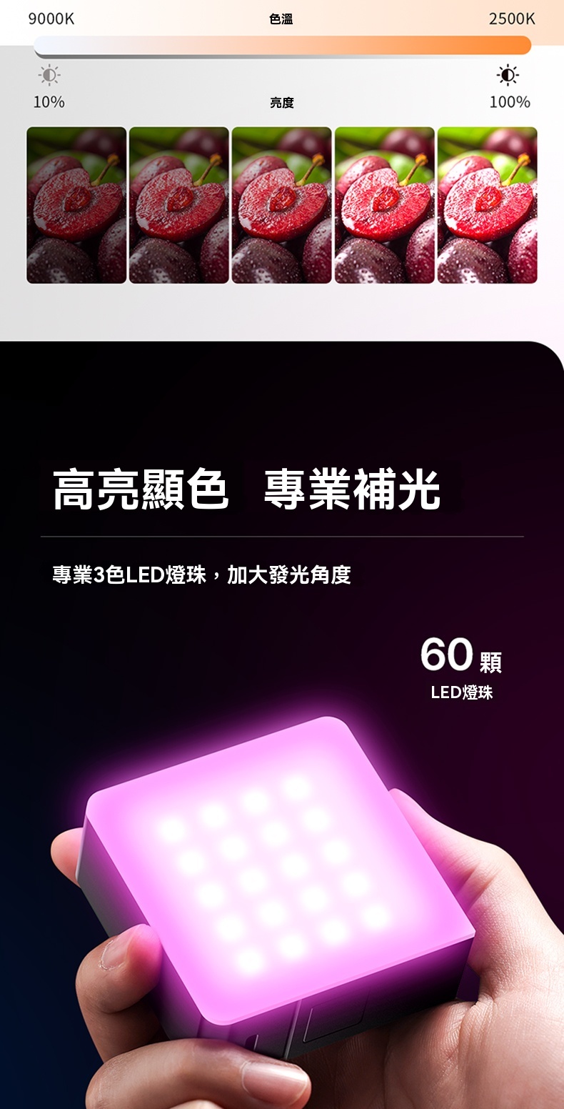 • 內置60顆LED燈珠,實現高亮補光與專業級顯色效果(CRI≥95)。